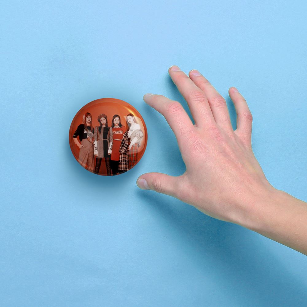 آینه های جیبی گروه بلک پینک Black Pink خندالو دایره ای به قطر 7.5 سانتی متر می باشد که نه خیلی بزرگ و غیر قابل استفاده در کیف آرایشی ست و نه خیلی کوچک که تصویر خاصی در آن مشاهده نشود. سایزی استاندارد و کارآمد دارد و مناسب قرار گیری در کیف لوازم آرایش و کیف های کوچک دستی نیز هست.