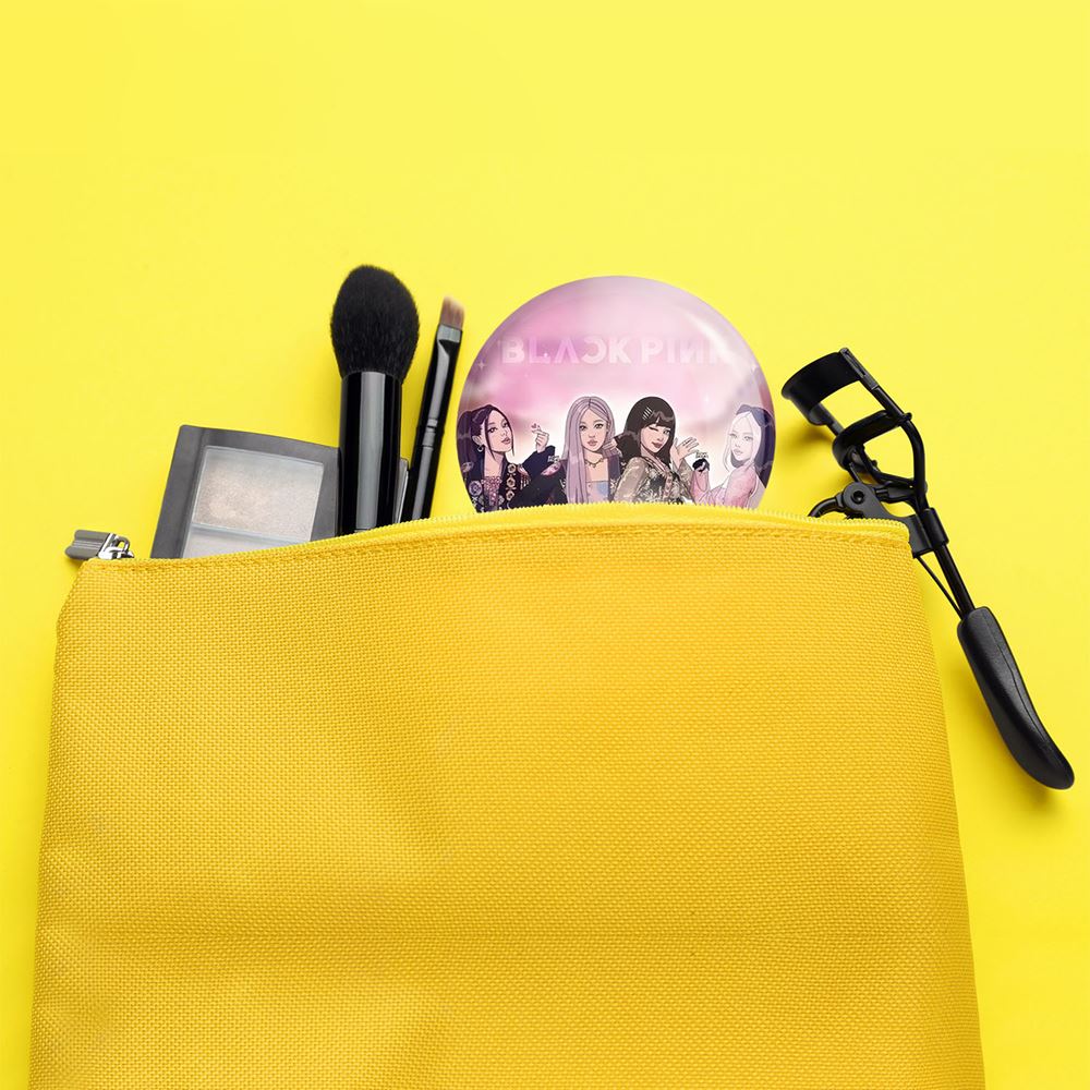 آینه های جیبی گروه بلک پینک Black Pink خندالو دایره ای به قطر 7.5 سانتی متر می باشد که نه خیلی بزرگ و غیر قابل استفاده در کیف آرایشی ست و نه خیلی کوچک که تصویر خاصی در آن مشاهده نشود. سایزی استاندارد و کارآمد دارد و مناسب قرار گیری در کیف لوازم آرایش و کیف های کوچک دستی نیز هست.