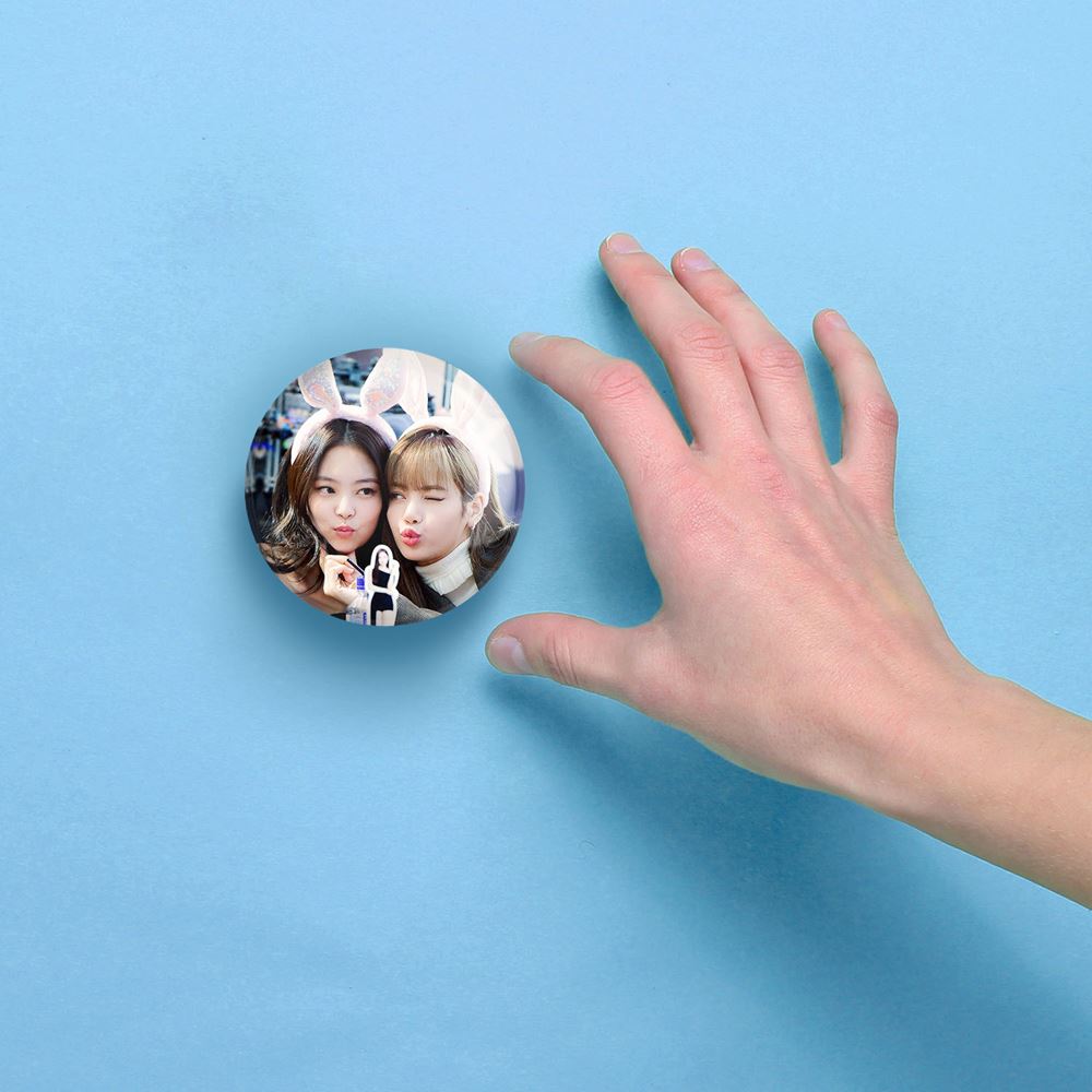 آینه های جیبی گروه بلک پینک Black Pink خندالو دایره ای به قطر 7.5 سانتی متر می باشد که نه خیلی بزرگ و غیر قابل استفاده در کیف آرایشی ست و نه خیلی کوچک که تصویر خاصی در آن مشاهده نشود. سایزی استاندارد و کارآمد دارد و مناسب قرار گیری در کیف لوازم آرایش و کیف های کوچک دستی نیز هست.