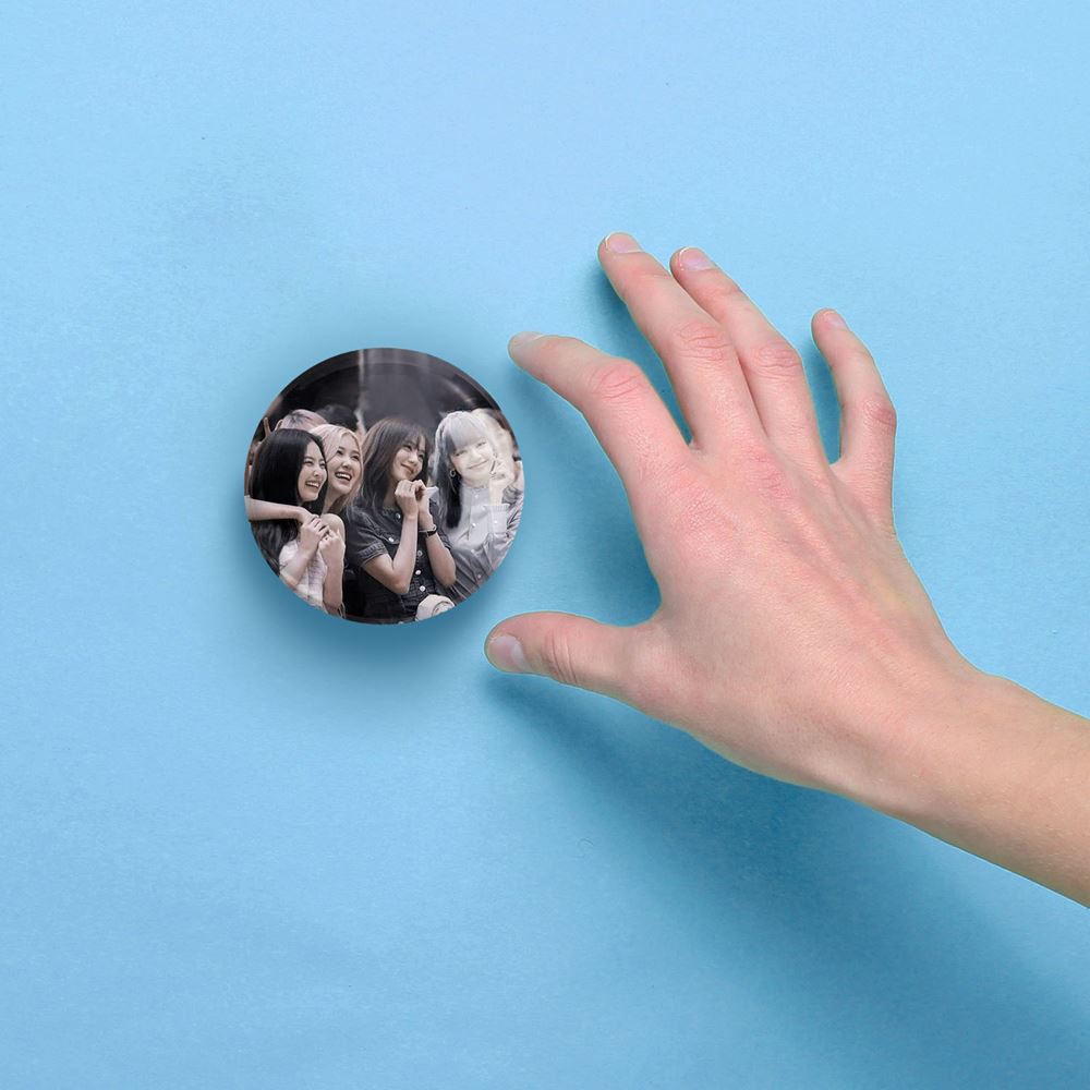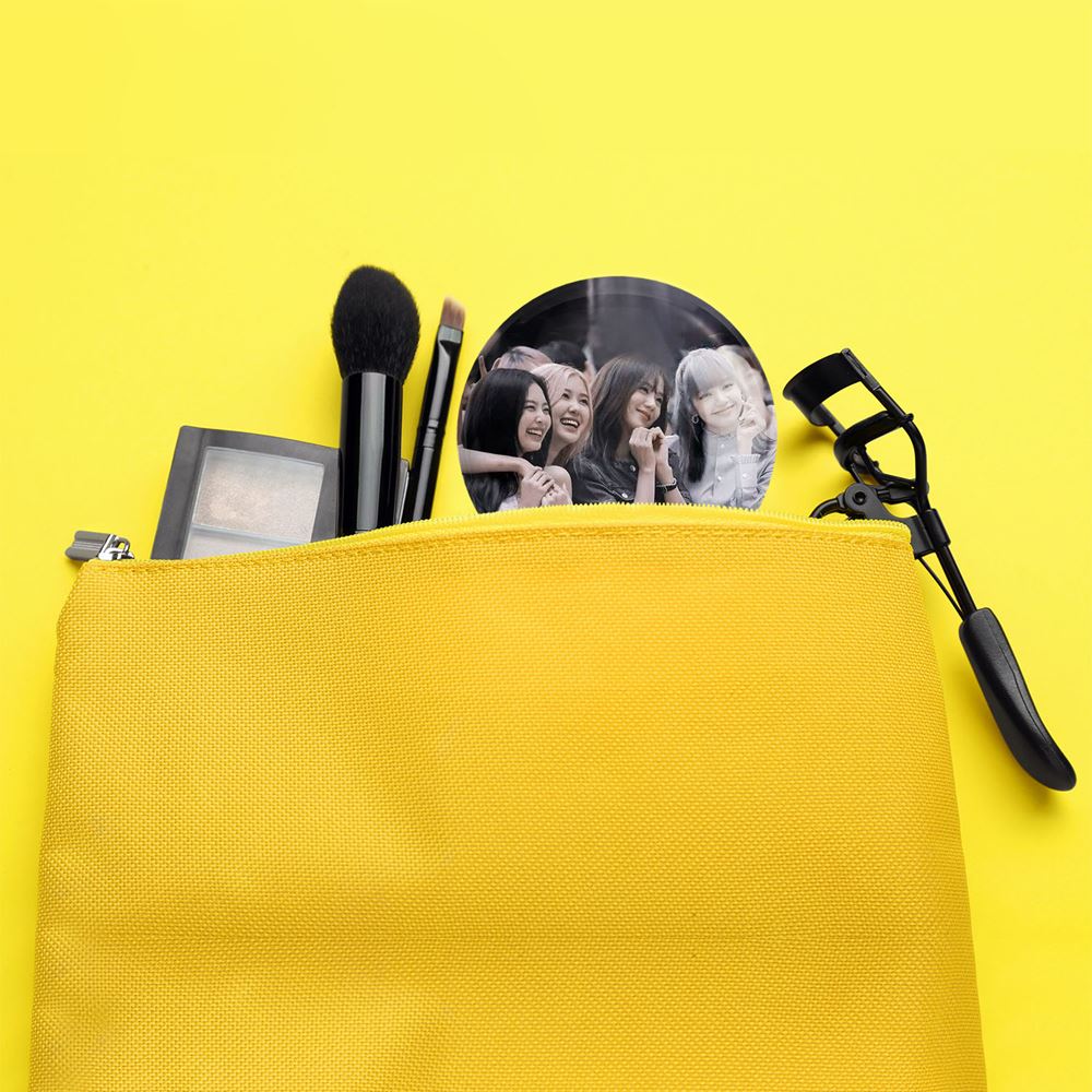 آینه های جیبی گروه بلک پینک Black Pink خندالو دایره ای به قطر 7.5 سانتی متر می باشد که نه خیلی بزرگ و غیر قابل استفاده در کیف آرایشی ست و نه خیلی کوچک که تصویر خاصی در آن مشاهده نشود. سایزی استاندارد و کارآمد دارد و مناسب قرار گیری در کیف لوازم آرایش و کیف های کوچک دستی نیز هست.