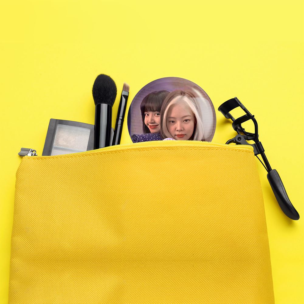 آینه های جیبی گروه بلک پینک Black Pink خندالو دایره ای به قطر 7.5 سانتی متر می باشد که نه خیلی بزرگ و غیر قابل استفاده در کیف آرایشی ست و نه خیلی کوچک که تصویر خاصی در آن مشاهده نشود. سایزی استاندارد و کارآمد دارد و مناسب قرار گیری در کیف لوازم آرایش و کیف های کوچک دستی نیز هست.