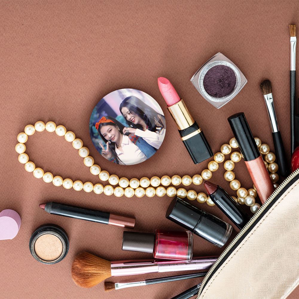 آینه های جیبی گروه بلک پینک Black Pink خندالو دایره ای به قطر 7.5 سانتی متر می باشد که نه خیلی بزرگ و غیر قابل استفاده در کیف آرایشی ست و نه خیلی کوچک که تصویر خاصی در آن مشاهده نشود. سایزی استاندارد و کارآمد دارد و مناسب قرار گیری در کیف لوازم آرایش و کیف های کوچک دستی نیز هست.