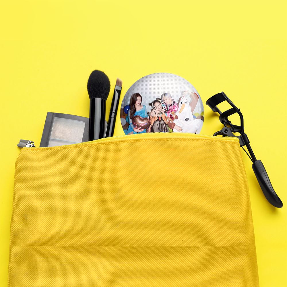 آینه های جیبی گروه بلک پینک Black Pink خندالو دایره ای به قطر 7.5 سانتی متر می باشد که نه خیلی بزرگ و غیر قابل استفاده در کیف آرایشی ست و نه خیلی کوچک که تصویر خاصی در آن مشاهده نشود. سایزی استاندارد و کارآمد دارد و مناسب قرار گیری در کیف لوازم آرایش و کیف های کوچک دستی نیز هست.