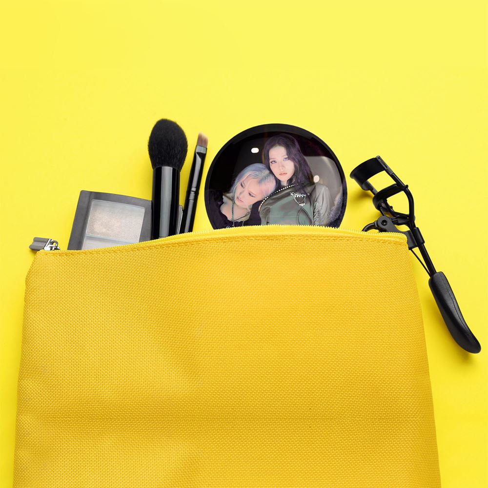 آینه های جیبی گروه بلک پینک Black Pink خندالو دایره ای به قطر 7.5 سانتی متر می باشد که نه خیلی بزرگ و غیر قابل استفاده در کیف آرایشی ست و نه خیلی کوچک که تصویر خاصی در آن مشاهده نشود. سایزی استاندارد و کارآمد دارد و مناسب قرار گیری در کیف لوازم آرایش و کیف های کوچک دستی نیز هست.
