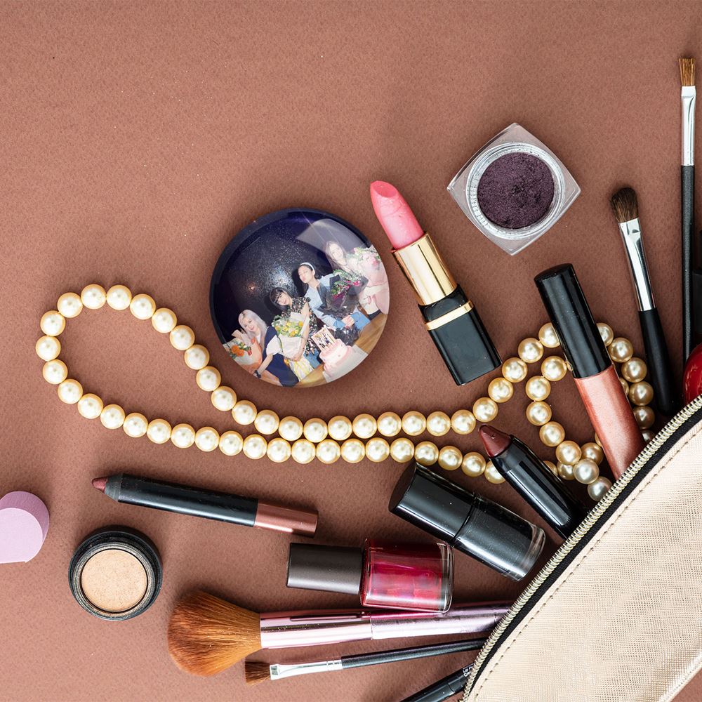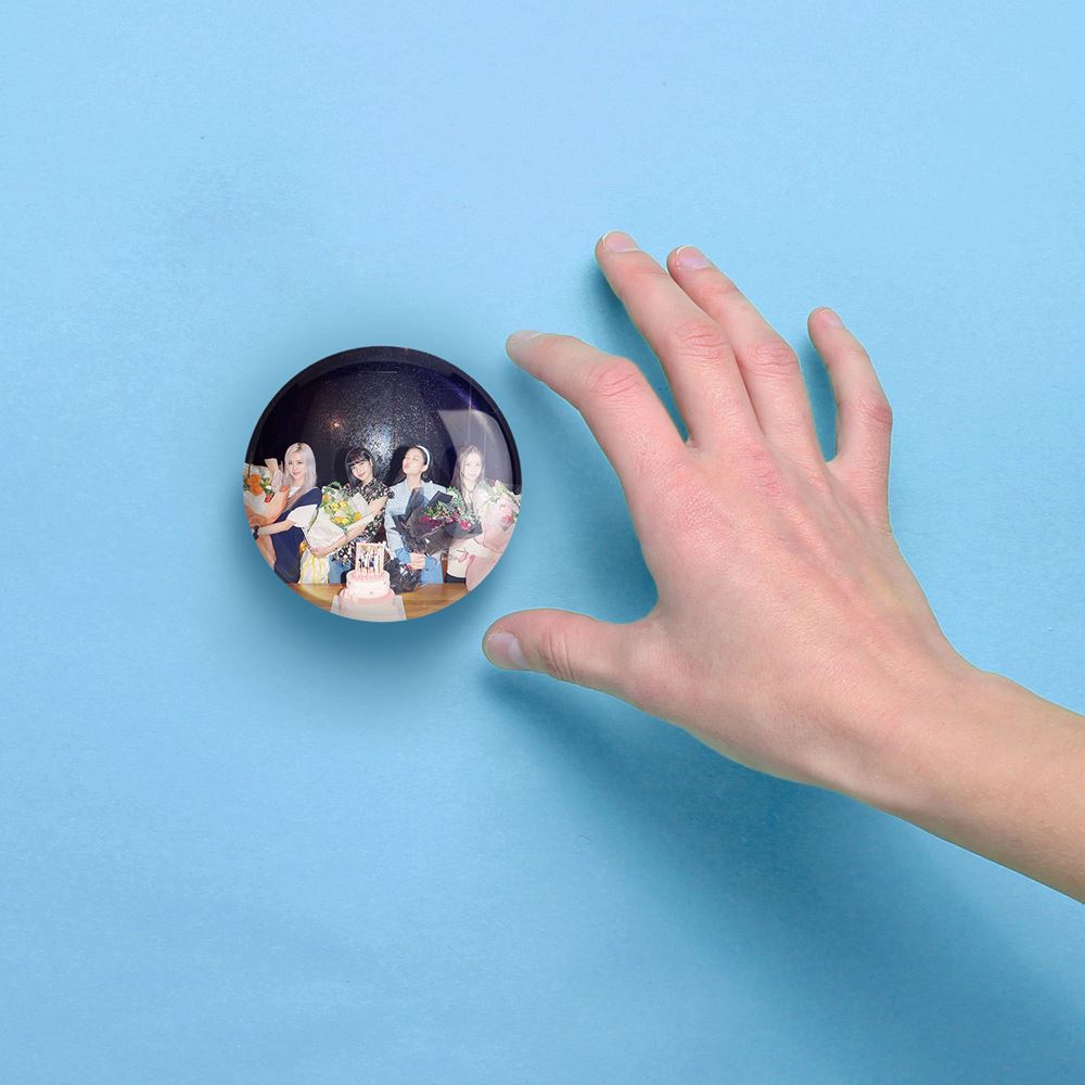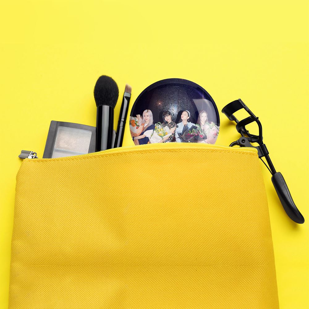 آینه های جیبی گروه بلک پینک Black Pink خندالو دایره ای به قطر 7.5 سانتی متر می باشد که نه خیلی بزرگ و غیر قابل استفاده در کیف آرایشی ست و نه خیلی کوچک که تصویر خاصی در آن مشاهده نشود. سایزی استاندارد و کارآمد دارد و مناسب قرار گیری در کیف لوازم آرایش و کیف های کوچک دستی نیز هست.