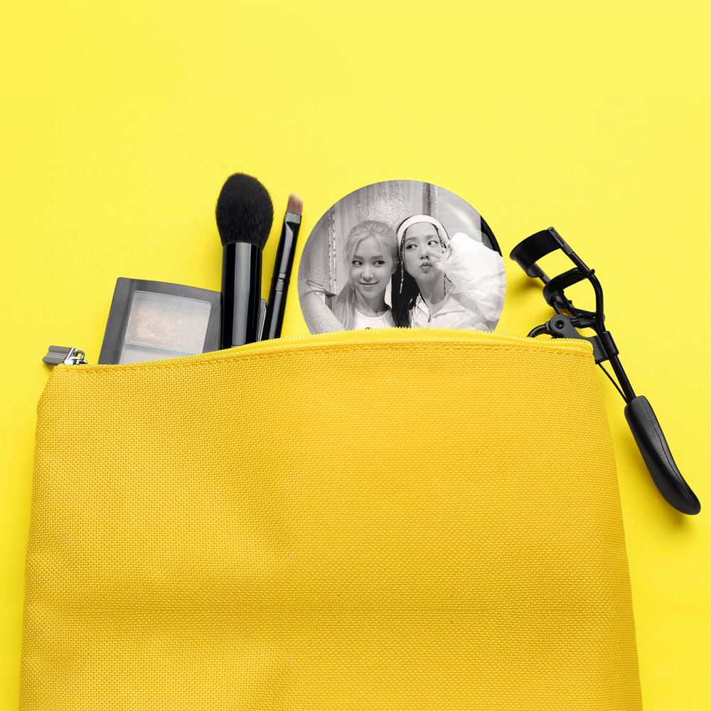 آینه های جیبی گروه بلک پینک Black Pink خندالو دایره ای به قطر 7.5 سانتی متر می باشد که نه خیلی بزرگ و غیر قابل استفاده در کیف آرایشی ست و نه خیلی کوچک که تصویر خاصی در آن مشاهده نشود. سایزی استاندارد و کارآمد دارد و مناسب قرار گیری در کیف لوازم آرایش و کیف های کوچک دستی نیز هست.