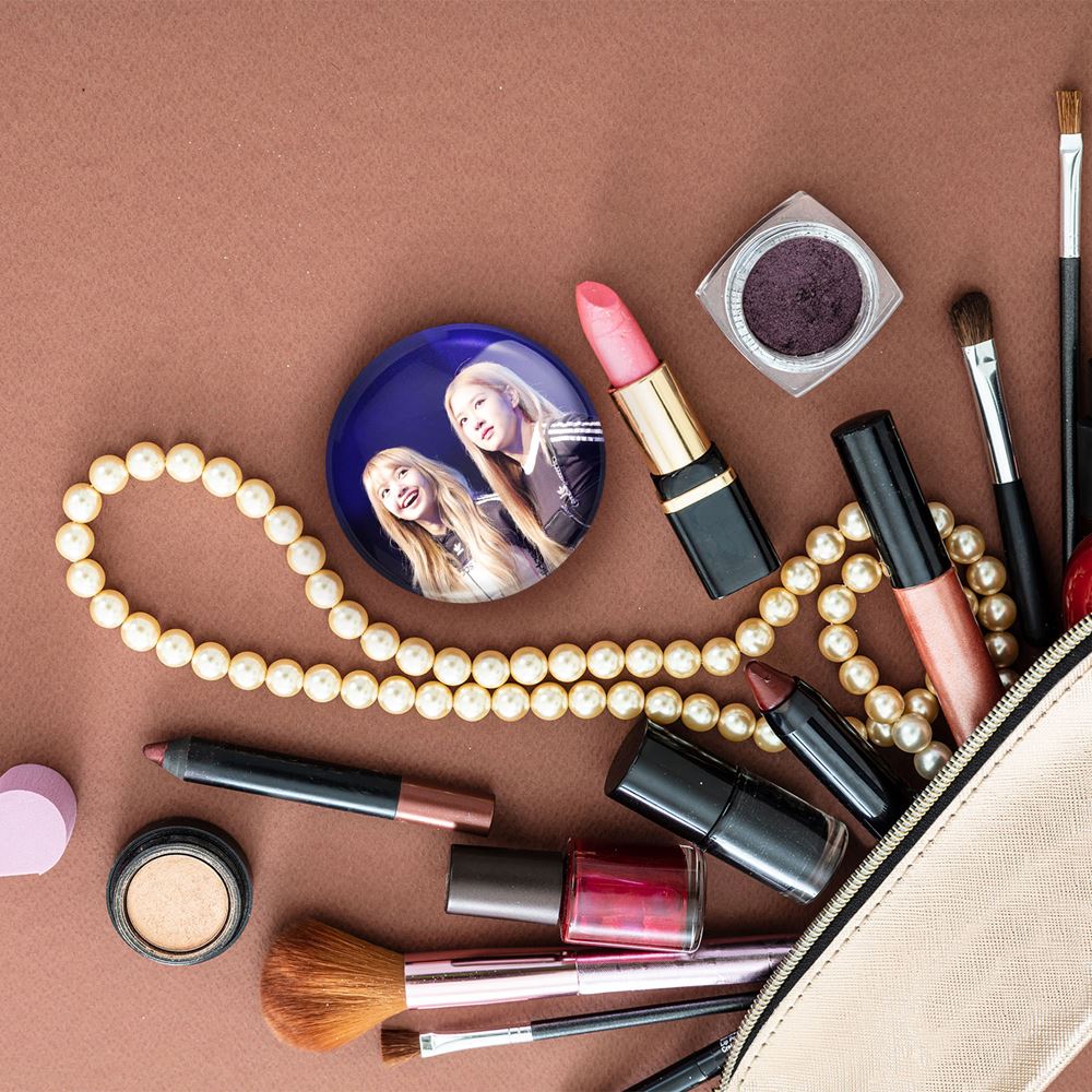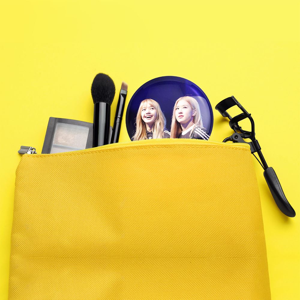 آینه های جیبی گروه بلک پینک Black Pink خندالو دایره ای به قطر 7.5 سانتی متر می باشد که نه خیلی بزرگ و غیر قابل استفاده در کیف آرایشی ست و نه خیلی کوچک که تصویر خاصی در آن مشاهده نشود. سایزی استاندارد و کارآمد دارد و مناسب قرار گیری در کیف لوازم آرایش و کیف های کوچک دستی نیز هست.
