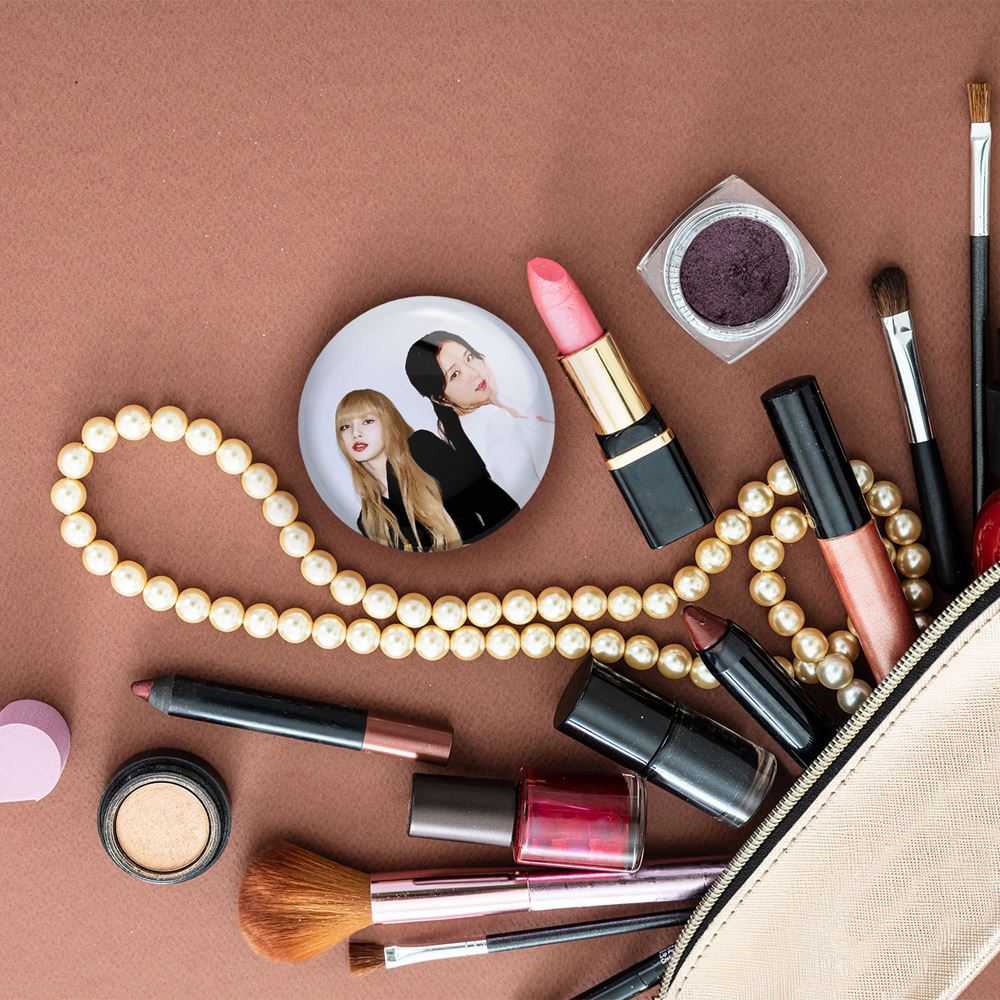 آینه های جیبی گروه بلک پینک Black Pink خندالو دایره ای به قطر 7.5 سانتی متر می باشد که نه خیلی بزرگ و غیر قابل استفاده در کیف آرایشی ست و نه خیلی کوچک که تصویر خاصی در آن مشاهده نشود. سایزی استاندارد و کارآمد دارد و مناسب قرار گیری در کیف لوازم آرایش و کیف های کوچک دستی نیز هست.