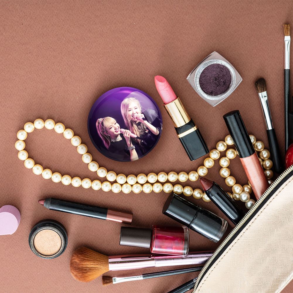 آینه های جیبی گروه بلک پینک Black Pink خندالو دایره ای به قطر 7.5 سانتی متر می باشد که نه خیلی بزرگ و غیر قابل استفاده در کیف آرایشی ست و نه خیلی کوچک که تصویر خاصی در آن مشاهده نشود. سایزی استاندارد و کارآمد دارد و مناسب قرار گیری در کیف لوازم آرایش و کیف های کوچک دستی نیز هست.