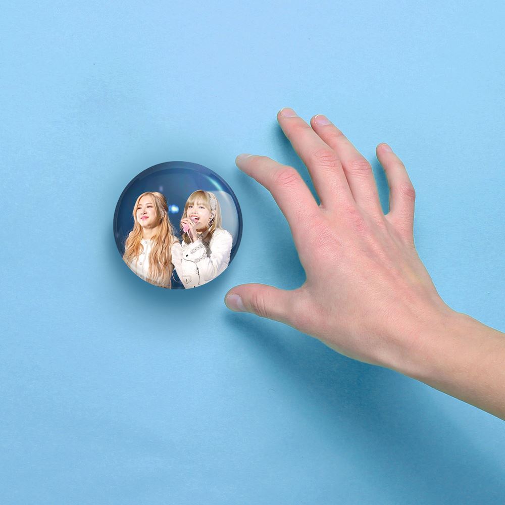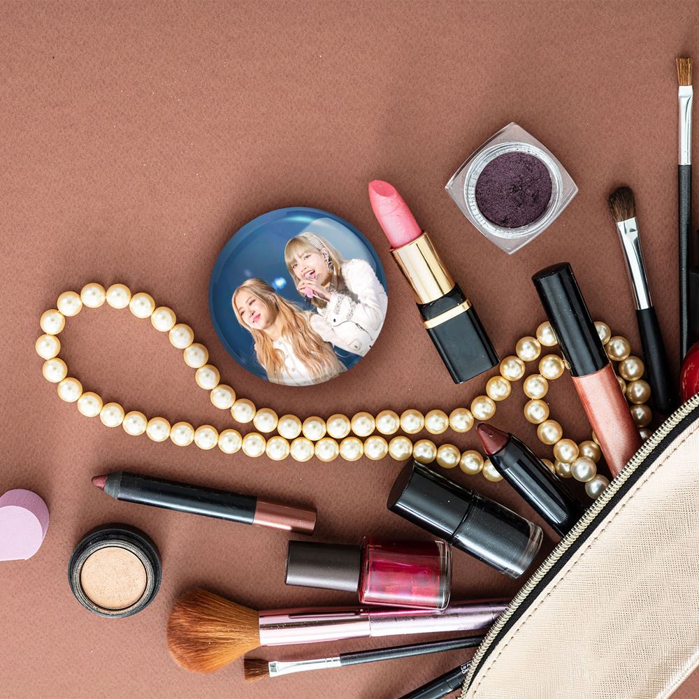 آینه های جیبی گروه بلک پینک Black Pink خندالو دایره ای به قطر 7.5 سانتی متر می باشد که نه خیلی بزرگ و غیر قابل استفاده در کیف آرایشی ست و نه خیلی کوچک که تصویر خاصی در آن مشاهده نشود. سایزی استاندارد و کارآمد دارد و مناسب قرار گیری در کیف لوازم آرایش و کیف های کوچک دستی نیز هست.