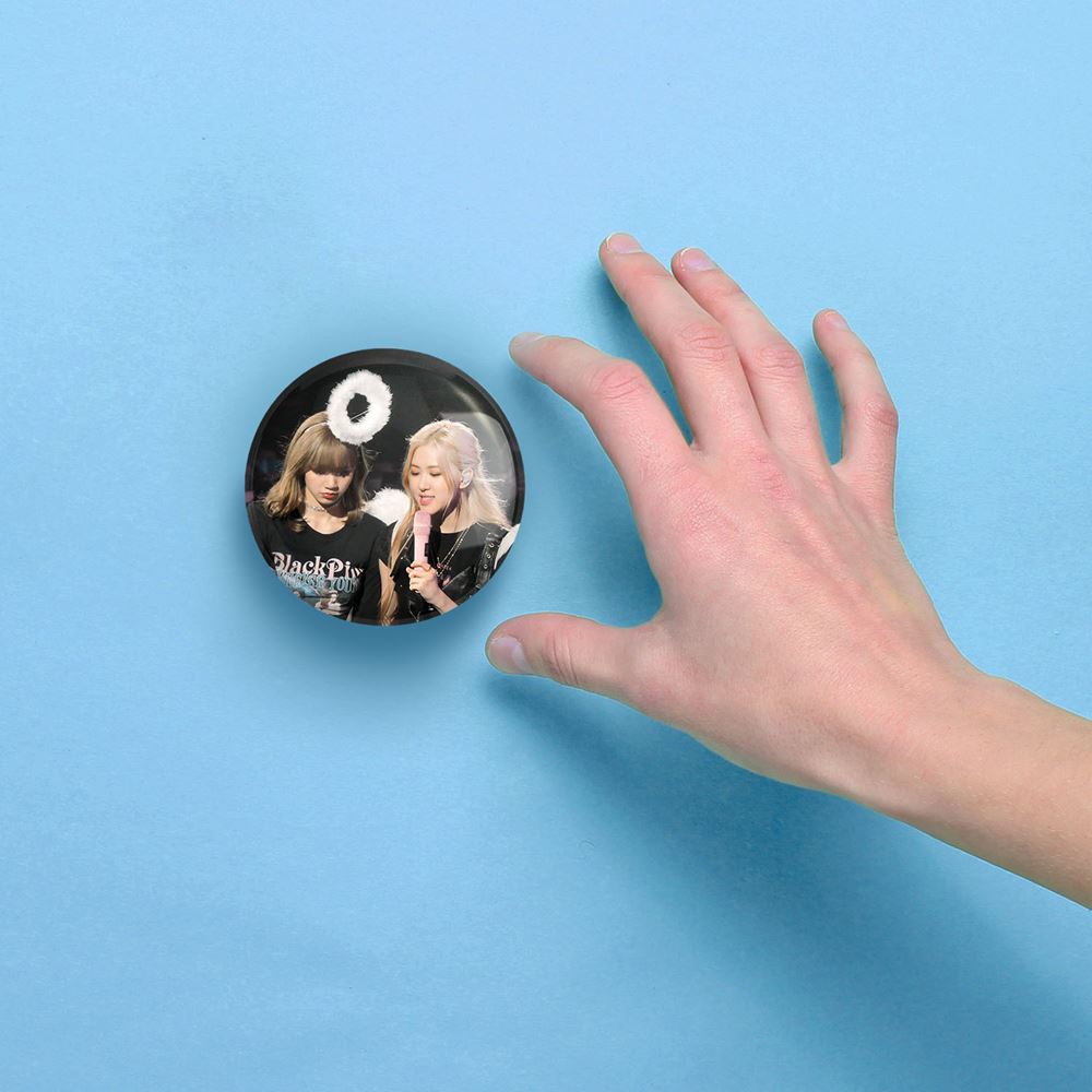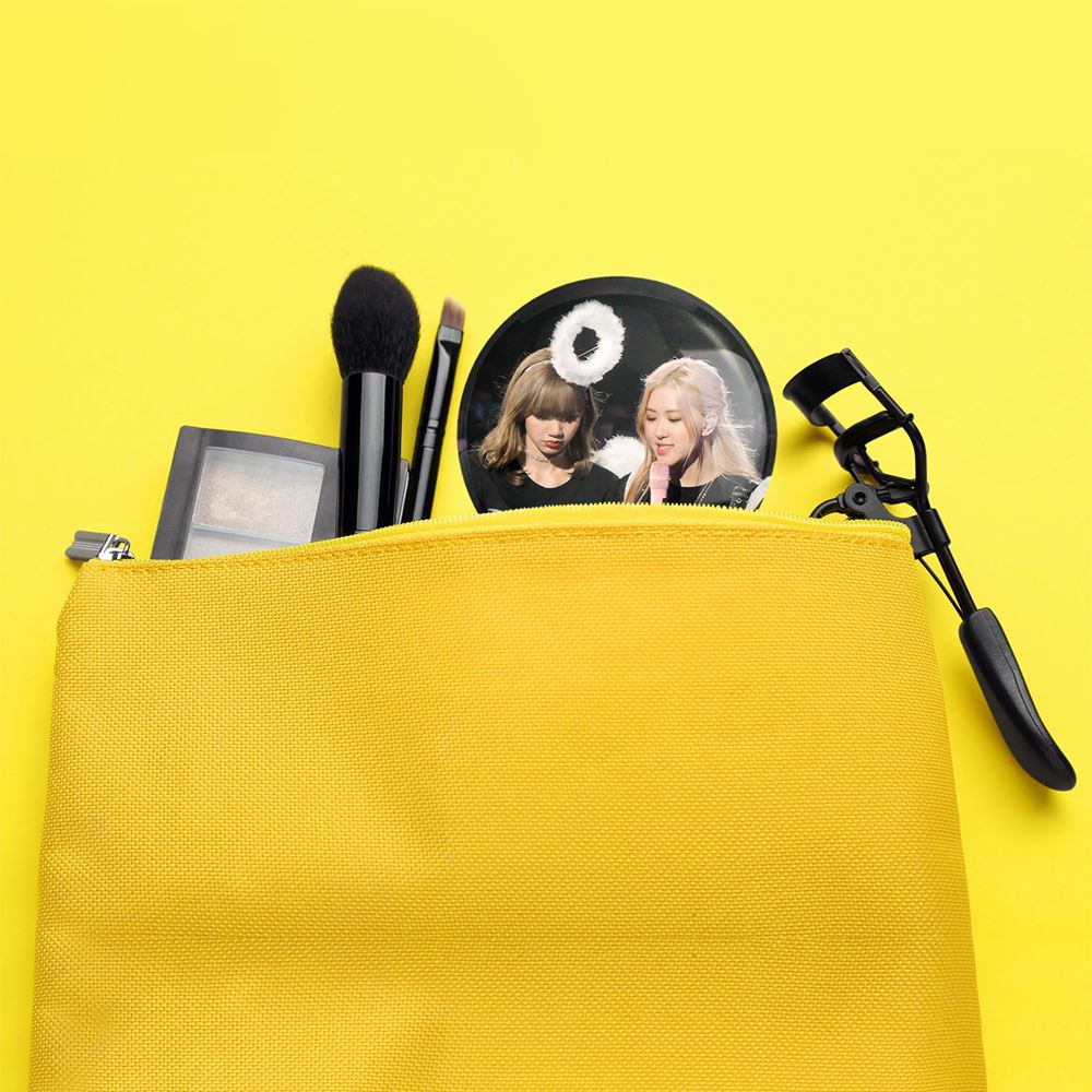آینه های جیبی گروه بلک پینک Black Pink خندالو دایره ای به قطر 7.5 سانتی متر می باشد که نه خیلی بزرگ و غیر قابل استفاده در کیف آرایشی ست و نه خیلی کوچک که تصویر خاصی در آن مشاهده نشود. سایزی استاندارد و کارآمد دارد و مناسب قرار گیری در کیف لوازم آرایش و کیف های کوچک دستی نیز هست.