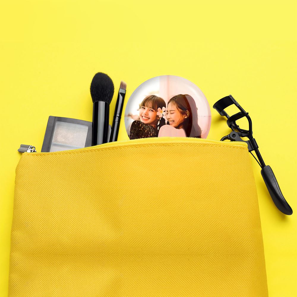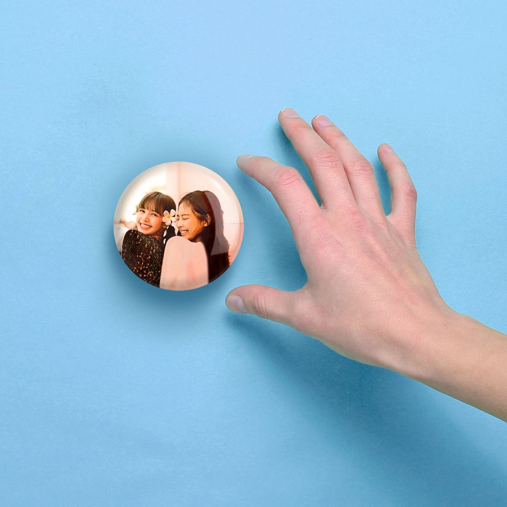 آینه های جیبی گروه بلک پینک Black Pink خندالو دایره ای به قطر 7.5 سانتی متر می باشد که نه خیلی بزرگ و غیر قابل استفاده در کیف آرایشی ست و نه خیلی کوچک که تصویر خاصی در آن مشاهده نشود. سایزی استاندارد و کارآمد دارد و مناسب قرار گیری در کیف لوازم آرایش و کیف های کوچک دستی نیز هست.