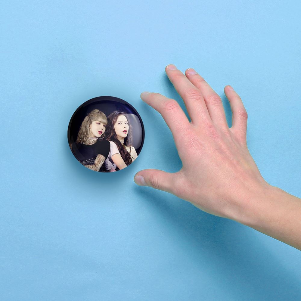 آینه های جیبی گروه بلک پینک Black Pink خندالو دایره ای به قطر 7.5 سانتی متر می باشد که نه خیلی بزرگ و غیر قابل استفاده در کیف آرایشی ست و نه خیلی کوچک که تصویر خاصی در آن مشاهده نشود. سایزی استاندارد و کارآمد دارد و مناسب قرار گیری در کیف لوازم آرایش و کیف های کوچک دستی نیز هست.