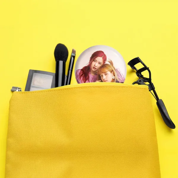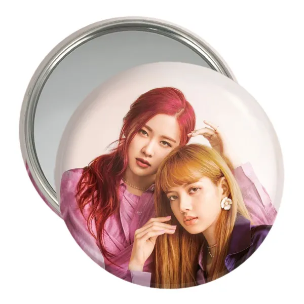 آینه های جیبی گروه بلک پینک Black Pink خندالو دایره ای به قطر 7.5 سانتی متر می باشد که نه خیلی بزرگ و غیر قابل استفاده در کیف آرایشی ست و نه خیلی کوچک که تصویر خاصی در آن مشاهده نشود. سایزی استاندارد و کارآمد دارد و مناسب قرار گیری در کیف لوازم آرایش و کیف های کوچک دستی نیز هست.