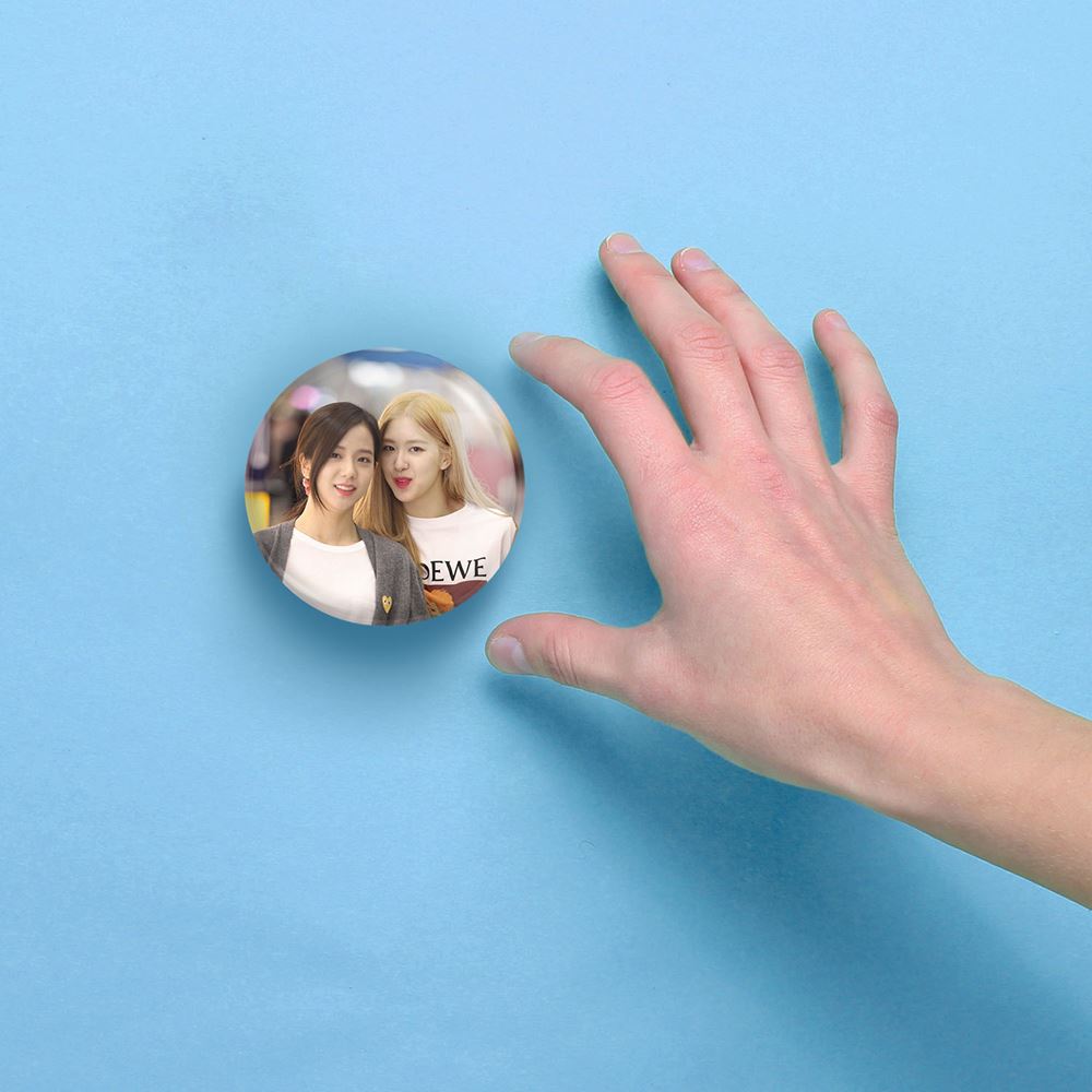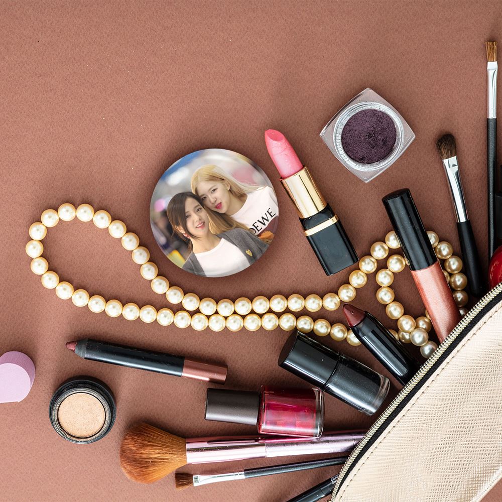 آینه های جیبی گروه بلک پینک Black Pink خندالو دایره ای به قطر 7.5 سانتی متر می باشد که نه خیلی بزرگ و غیر قابل استفاده در کیف آرایشی ست و نه خیلی کوچک که تصویر خاصی در آن مشاهده نشود. سایزی استاندارد و کارآمد دارد و مناسب قرار گیری در کیف لوازم آرایش و کیف های کوچک دستی نیز هست.