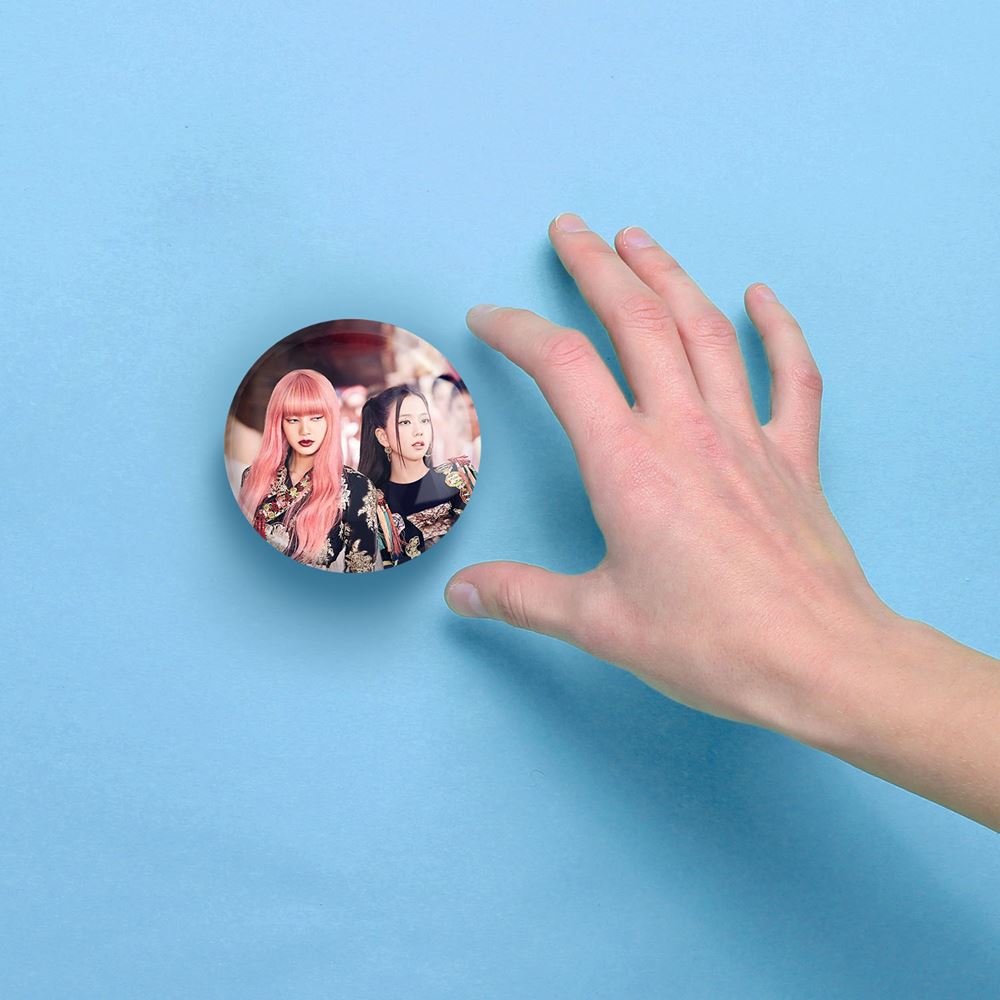 آینه های جیبی گروه بلک پینک Black Pink خندالو دایره ای به قطر 7.5 سانتی متر می باشد که نه خیلی بزرگ و غیر قابل استفاده در کیف آرایشی ست و نه خیلی کوچک که تصویر خاصی در آن مشاهده نشود. سایزی استاندارد و کارآمد دارد و مناسب قرار گیری در کیف لوازم آرایش و کیف های کوچک دستی نیز هست.