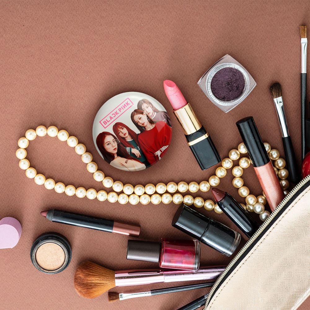 آینه های جیبی گروه بلک پینک Black Pink خندالو دایره ای به قطر 7.5 سانتی متر می باشد که نه خیلی بزرگ و غیر قابل استفاده در کیف آرایشی ست و نه خیلی کوچک که تصویر خاصی در آن مشاهده نشود. سایزی استاندارد و کارآمد دارد و مناسب قرار گیری در کیف لوازم آرایش و کیف های کوچک دستی نیز هست.