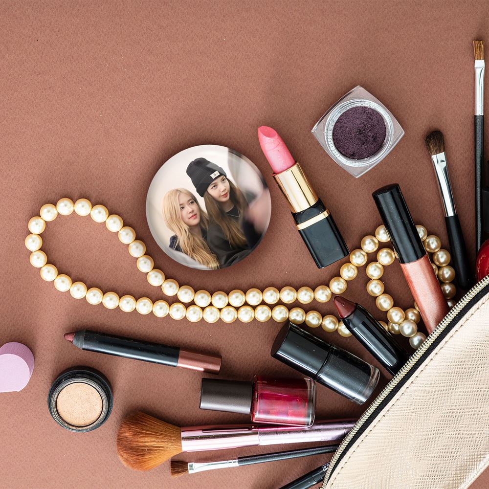 آینه های جیبی گروه بلک پینک Black Pink خندالو دایره ای به قطر 7.5 سانتی متر می باشد که نه خیلی بزرگ و غیر قابل استفاده در کیف آرایشی ست و نه خیلی کوچک که تصویر خاصی در آن مشاهده نشود. سایزی استاندارد و کارآمد دارد و مناسب قرار گیری در کیف لوازم آرایش و کیف های کوچک دستی نیز هست.