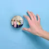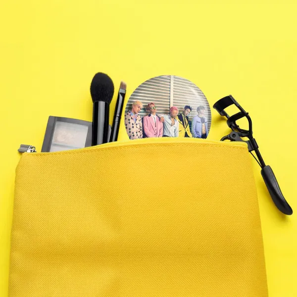 آینه های جیبی گروه بیگ بنگ BIGBANG خندالو دایره ای به قطر 7.5 سانتی متر می باشد که نه خیلی بزرگ و غیر قابل استفاده در کیف آرایشی ست و نه خیلی کوچک که تصویر خاصی در آن مشاهده نشود. سایزی استاندارد و کارآمد دارد و مناسب قرار گیری در کیف لوازم آرایش و کیف های کوچک دستی نیز هست.