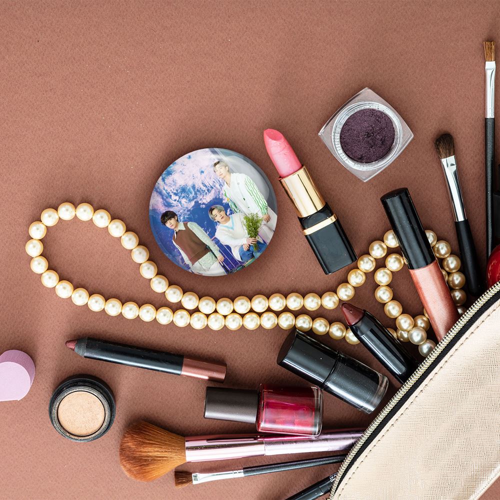 آینه های جیبی گروه بی تی اس BTS خندالو دایره ای به قطر 7.5 سانتی متر می باشد که نه خیلی بزرگ و غیر قابل استفاده در کیف آرایشی ست و نه خیلی کوچک که تصویر خاصی در آن مشاهده نشود. سایزی استاندارد و کارآمد دارد و مناسب قرار گیری در کیف لوازم آرایش و کیف های کوچک دستی نیز هست.