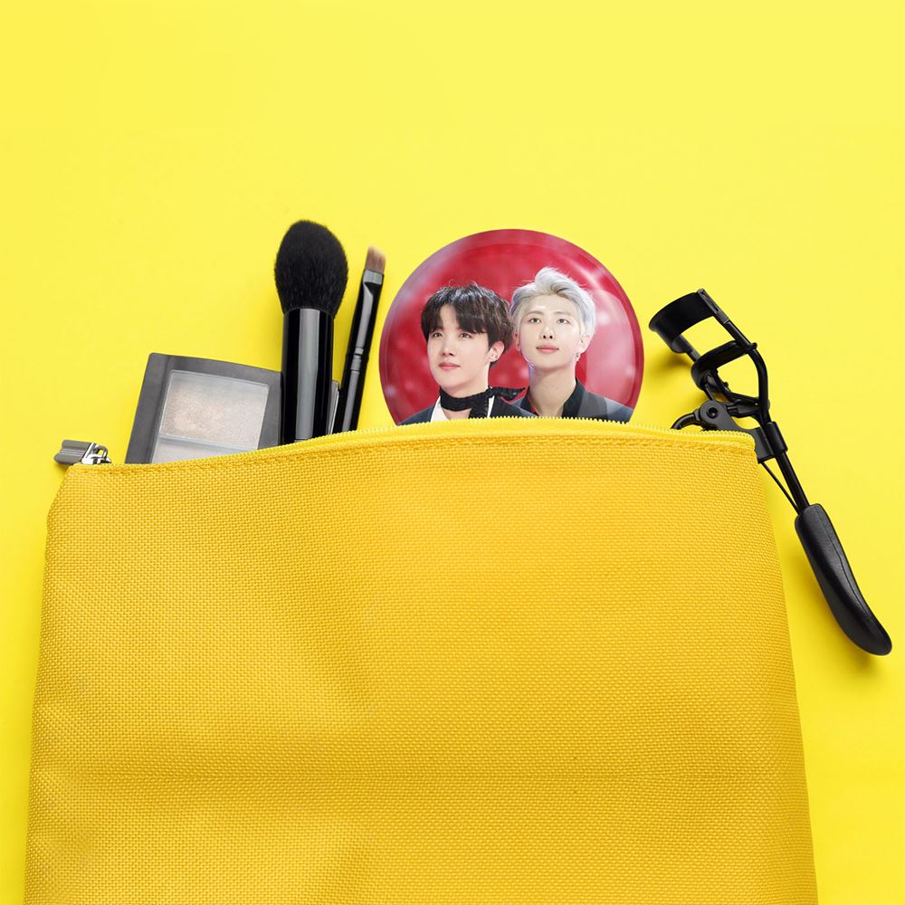 آینه های جیبی گروه بی تی اس BTS خندالو دایره ای به قطر 7.5 سانتی متر می باشد که نه خیلی بزرگ و غیر قابل استفاده در کیف آرایشی ست و نه خیلی کوچک که تصویر خاصی در آن مشاهده نشود. سایزی استاندارد و کارآمد دارد و مناسب قرار گیری در کیف لوازم آرایش و کیف های کوچک دستی نیز هست.