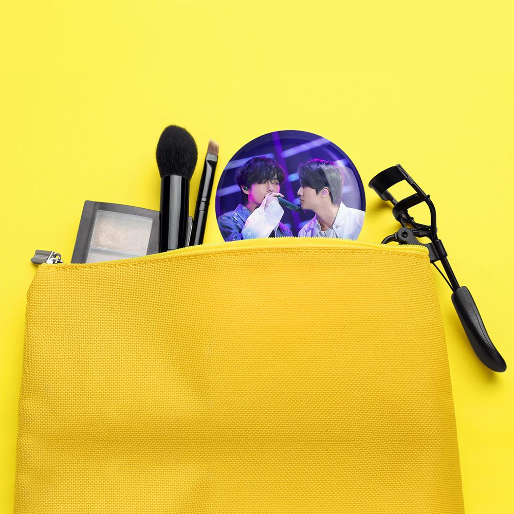 آینه های جیبی گروه بی تی اس BTS خندالو دایره ای به قطر 7.5 سانتی متر می باشد که نه خیلی بزرگ و غیر قابل استفاده در کیف آرایشی ست و نه خیلی کوچک که تصویر خاصی در آن مشاهده نشود. سایزی استاندارد و کارآمد دارد و مناسب قرار گیری در کیف لوازم آرایش و کیف های کوچک دستی نیز هست.