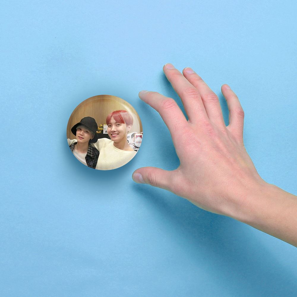 آینه های جیبی گروه بی تی اس BTS خندالو دایره ای به قطر 7.5 سانتی متر می باشد که نه خیلی بزرگ و غیر قابل استفاده در کیف آرایشی ست و نه خیلی کوچک که تصویر خاصی در آن مشاهده نشود. سایزی استاندارد و کارآمد دارد و مناسب قرار گیری در کیف لوازم آرایش و کیف های کوچک دستی نیز هست.