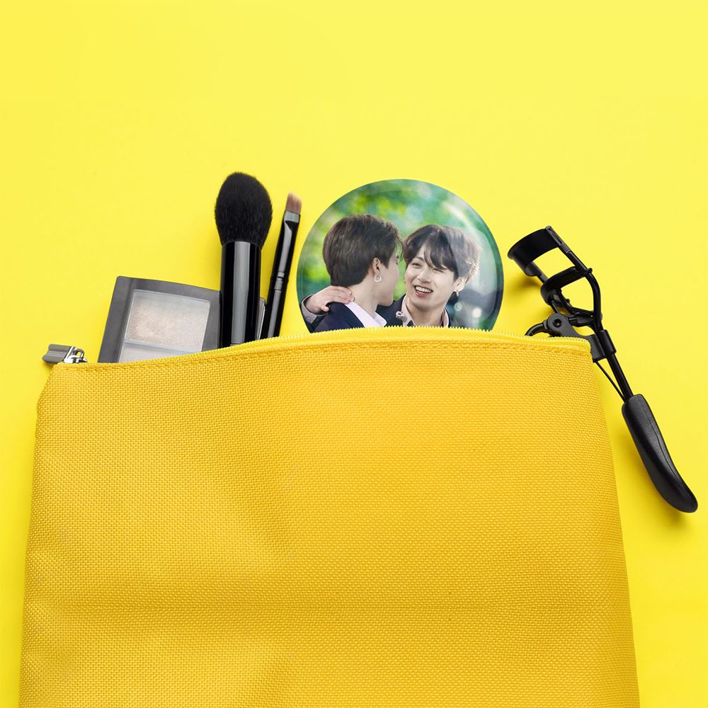 آینه های جیبی گروه بی تی اس BTS خندالو دایره ای به قطر 7.5 سانتی متر می باشد که نه خیلی بزرگ و غیر قابل استفاده در کیف آرایشی ست و نه خیلی کوچک که تصویر خاصی در آن مشاهده نشود. سایزی استاندارد و کارآمد دارد و مناسب قرار گیری در کیف لوازم آرایش و کیف های کوچک دستی نیز هست.
