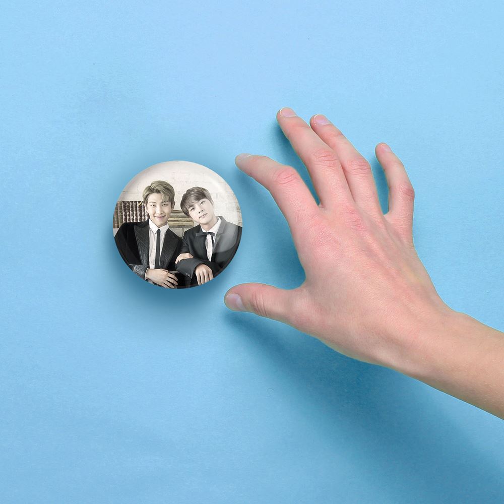 آینه های جیبی گروه بی تی اس BTS خندالو دایره ای به قطر 7.5 سانتی متر می باشد که نه خیلی بزرگ و غیر قابل استفاده در کیف آرایشی ست و نه خیلی کوچک که تصویر خاصی در آن مشاهده نشود. سایزی استاندارد و کارآمد دارد و مناسب قرار گیری در کیف لوازم آرایش و کیف های کوچک دستی نیز هست.