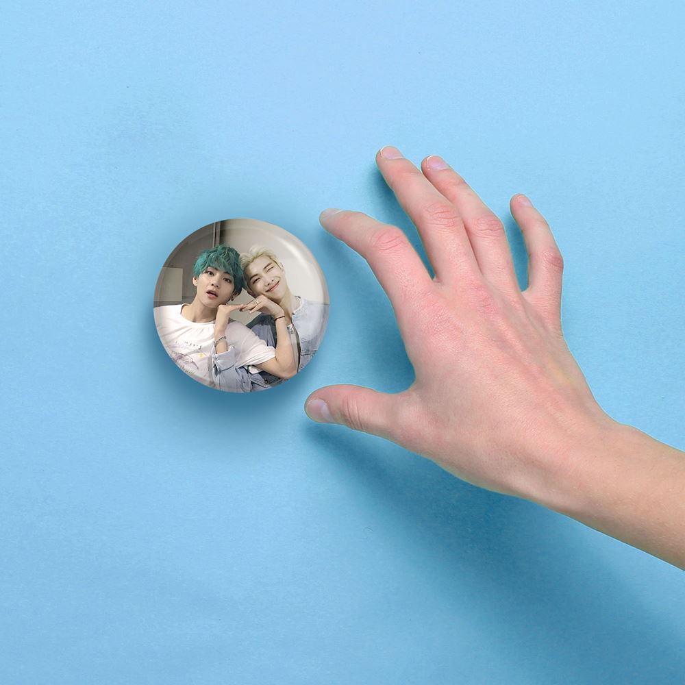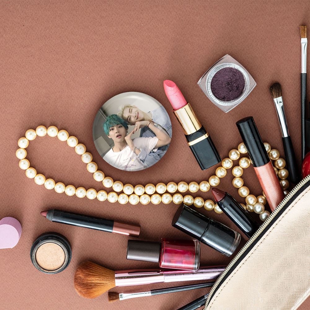 آینه های جیبی گروه بی تی اس BTS خندالو دایره ای به قطر 7.5 سانتی متر می باشد که نه خیلی بزرگ و غیر قابل استفاده در کیف آرایشی ست و نه خیلی کوچک که تصویر خاصی در آن مشاهده نشود. سایزی استاندارد و کارآمد دارد و مناسب قرار گیری در کیف لوازم آرایش و کیف های کوچک دستی نیز هست.