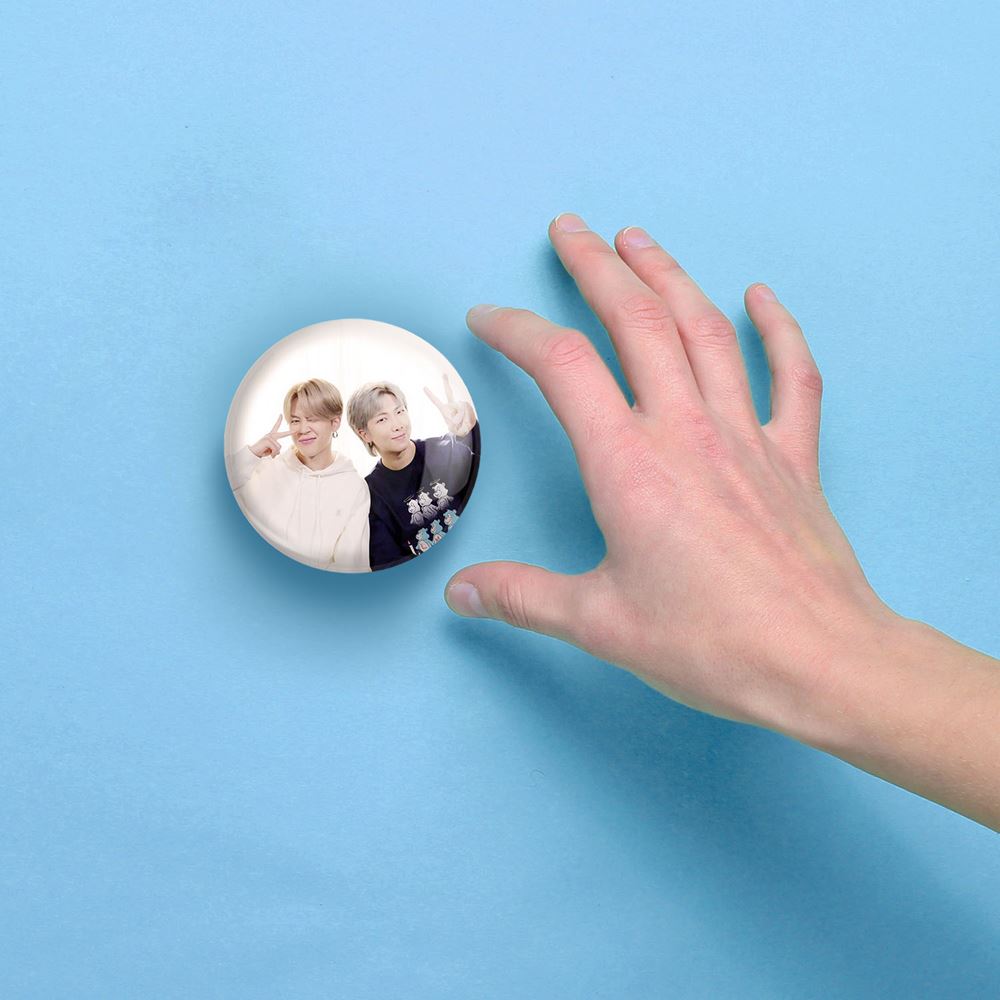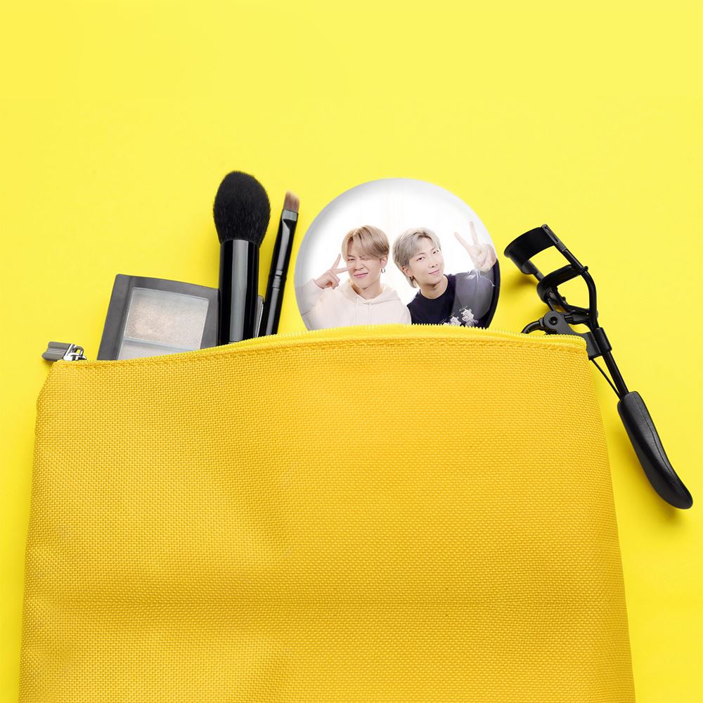 آینه های جیبی گروه بی تی اس BTS خندالو دایره ای به قطر 7.5 سانتی متر می باشد که نه خیلی بزرگ و غیر قابل استفاده در کیف آرایشی ست و نه خیلی کوچک که تصویر خاصی در آن مشاهده نشود. سایزی استاندارد و کارآمد دارد و مناسب قرار گیری در کیف لوازم آرایش و کیف های کوچک دستی نیز هست.
