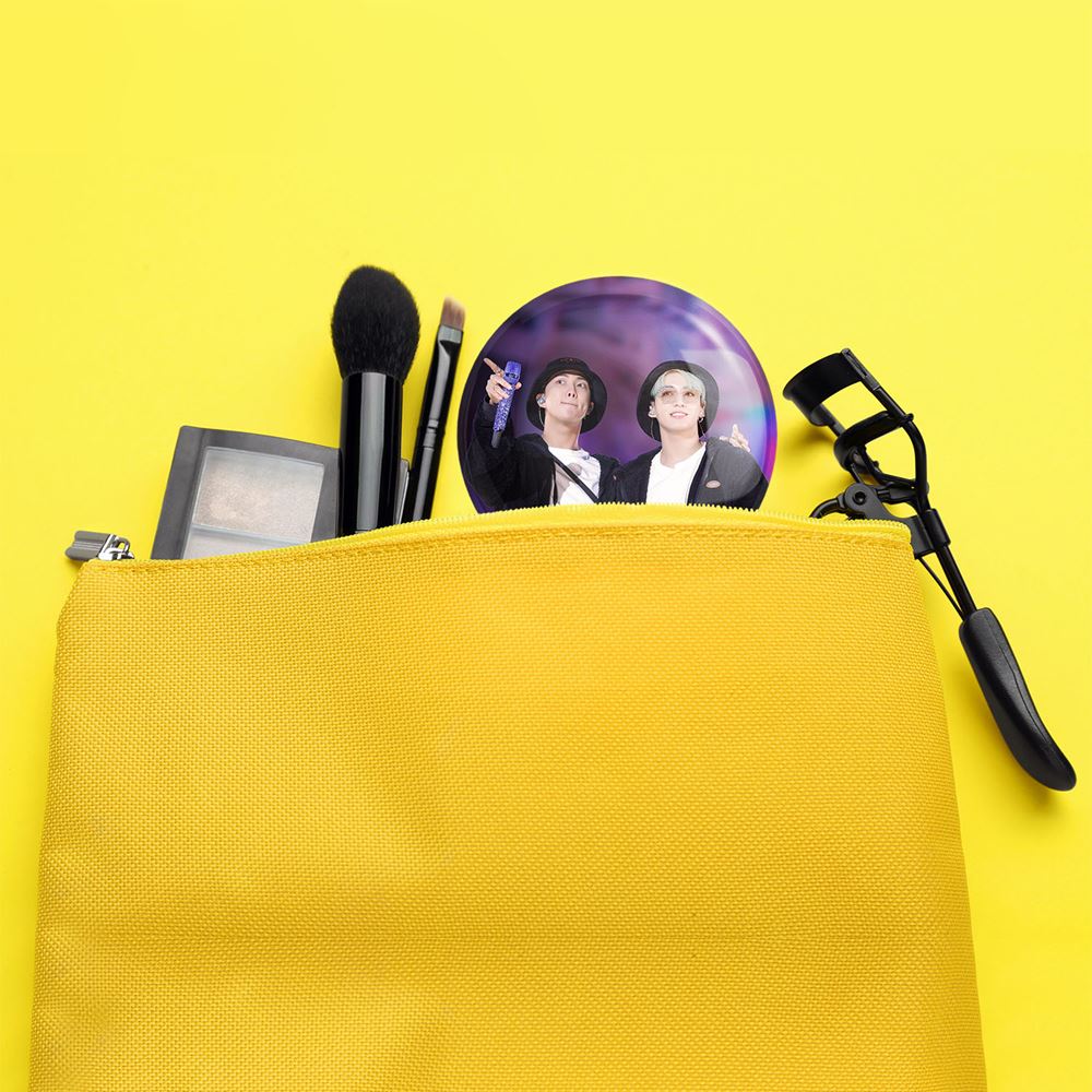 آینه های جیبی گروه بی تی اس BTS خندالو دایره ای به قطر 7.5 سانتی متر می باشد که نه خیلی بزرگ و غیر قابل استفاده در کیف آرایشی ست و نه خیلی کوچک که تصویر خاصی در آن مشاهده نشود. سایزی استاندارد و کارآمد دارد و مناسب قرار گیری در کیف لوازم آرایش و کیف های کوچک دستی نیز هست.