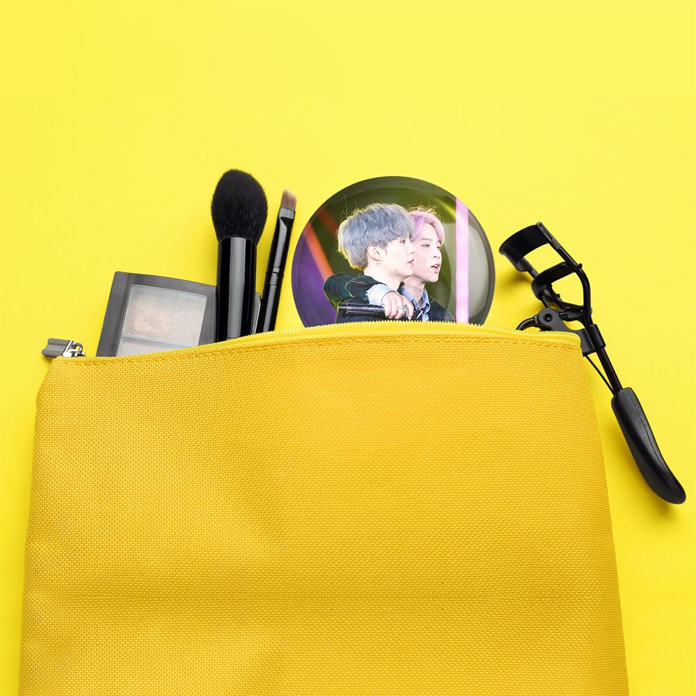 آینه های جیبی گروه بی تی اس BTS خندالو دایره ای به قطر 7.5 سانتی متر می باشد که نه خیلی بزرگ و غیر قابل استفاده در کیف آرایشی ست و نه خیلی کوچک که تصویر خاصی در آن مشاهده نشود. سایزی استاندارد و کارآمد دارد و مناسب قرار گیری در کیف لوازم آرایش و کیف های کوچک دستی نیز هست.