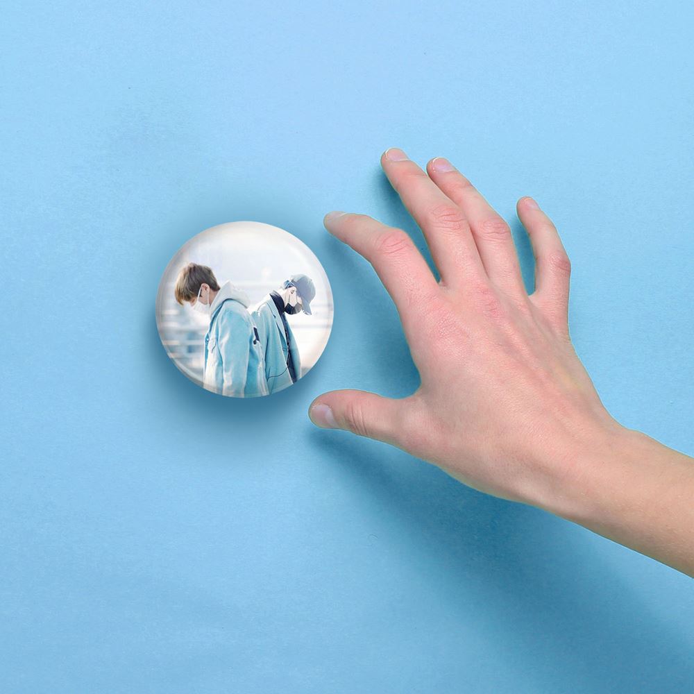 آینه های جیبی گروه بی تی اس BTS خندالو دایره ای به قطر 7.5 سانتی متر می باشد که نه خیلی بزرگ و غیر قابل استفاده در کیف آرایشی ست و نه خیلی کوچک که تصویر خاصی در آن مشاهده نشود. سایزی استاندارد و کارآمد دارد و مناسب قرار گیری در کیف لوازم آرایش و کیف های کوچک دستی نیز هست.