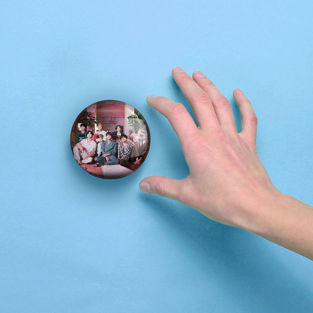 آینه های جیبی گروه بی تی اس BTS خندالو دایره ای به قطر 7.5 سانتی متر می باشد که نه خیلی بزرگ و غیر قابل استفاده در کیف آرایشی ست و نه خیلی کوچک که تصویر خاصی در آن مشاهده نشود. سایزی استاندارد و کارآمد دارد و مناسب قرار گیری در کیف لوازم آرایش و کیف های کوچک دستی نیز هست.