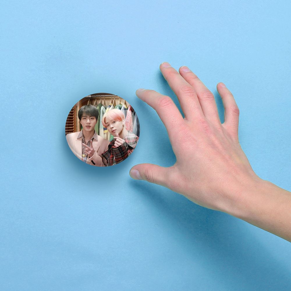 آینه های جیبی گروه بی تی اس BTS خندالو دایره ای به قطر 7.5 سانتی متر می باشد که نه خیلی بزرگ و غیر قابل استفاده در کیف آرایشی ست و نه خیلی کوچک که تصویر خاصی در آن مشاهده نشود. سایزی استاندارد و کارآمد دارد و مناسب قرار گیری در کیف لوازم آرایش و کیف های کوچک دستی نیز هست.