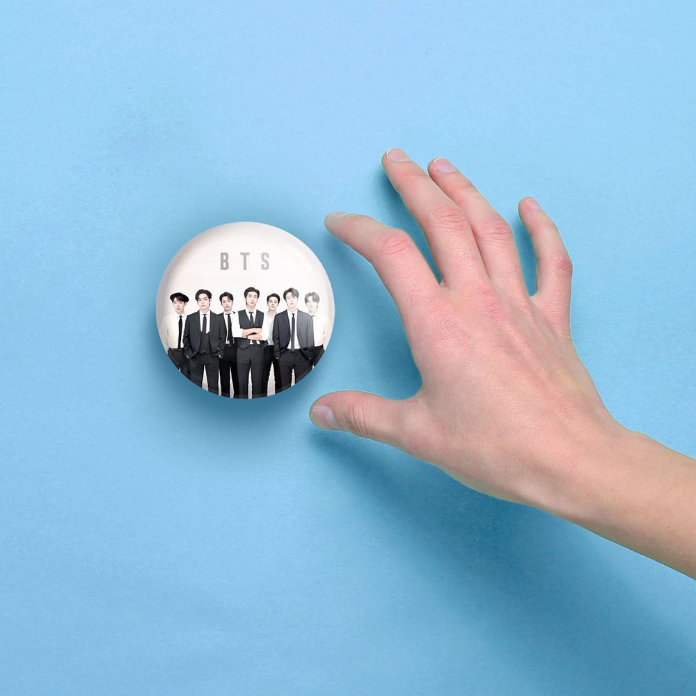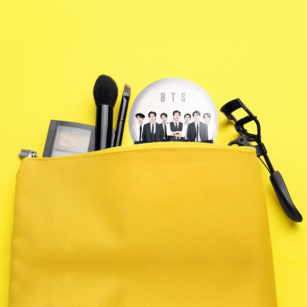 آینه های جیبی گروه بی تی اس BTS خندالو دایره ای به قطر 7.5 سانتی متر می باشد که نه خیلی بزرگ و غیر قابل استفاده در کیف آرایشی ست و نه خیلی کوچک که تصویر خاصی در آن مشاهده نشود. سایزی استاندارد و کارآمد دارد و مناسب قرار گیری در کیف لوازم آرایش و کیف های کوچک دستی نیز هست.
