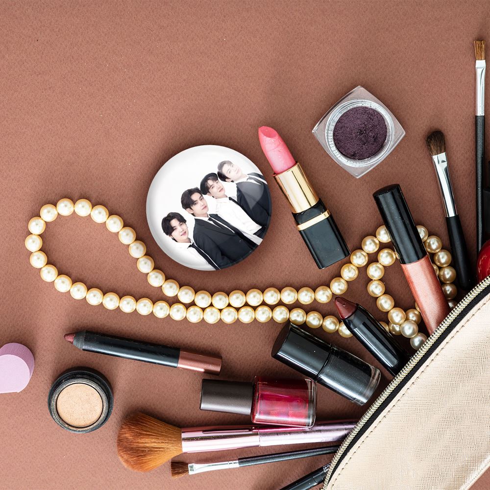 آینه های جیبی گروه بی تی اس BTS خندالو دایره ای به قطر 7.5 سانتی متر می باشد که نه خیلی بزرگ و غیر قابل استفاده در کیف آرایشی ست و نه خیلی کوچک که تصویر خاصی در آن مشاهده نشود. سایزی استاندارد و کارآمد دارد و مناسب قرار گیری در کیف لوازم آرایش و کیف های کوچک دستی نیز هست.