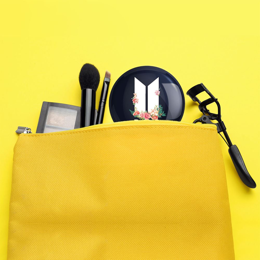 آینه های جیبی گروه بی تی اس BTS خندالو دایره ای به قطر 7.5 سانتی متر می باشد که نه خیلی بزرگ و غیر قابل استفاده در کیف آرایشی ست و نه خیلی کوچک که تصویر خاصی در آن مشاهده نشود. سایزی استاندارد و کارآمد دارد و مناسب قرار گیری در کیف لوازم آرایش و کیف های کوچک دستی نیز هست.