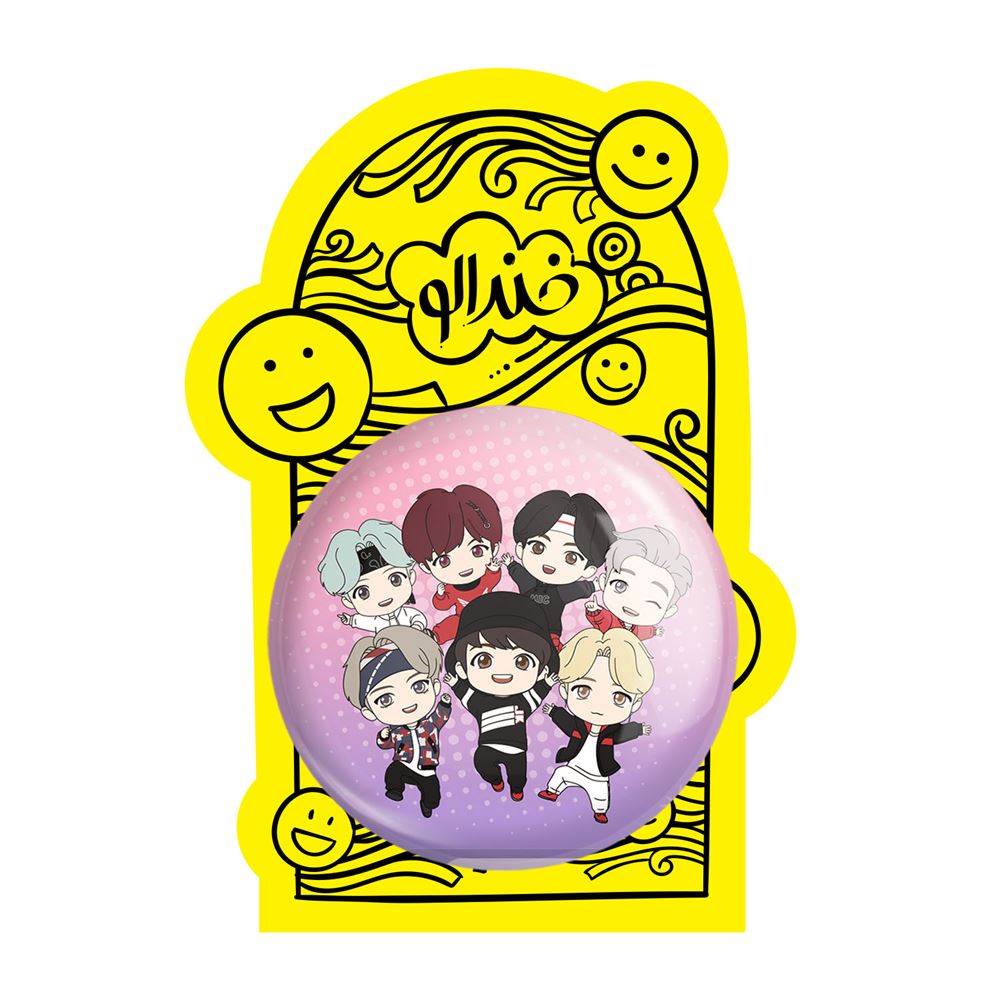 آینه های جیبی گروه بی تی اس BTS خندالو دایره ای به قطر 7.5 سانتی متر می باشد که نه خیلی بزرگ و غیر قابل استفاده در کیف آرایشی ست و نه خیلی کوچک که تصویر خاصی در آن مشاهده نشود. سایزی استاندارد و کارآمد دارد و مناسب قرار گیری در کیف لوازم آرایش و کیف های کوچک دستی نیز هست.