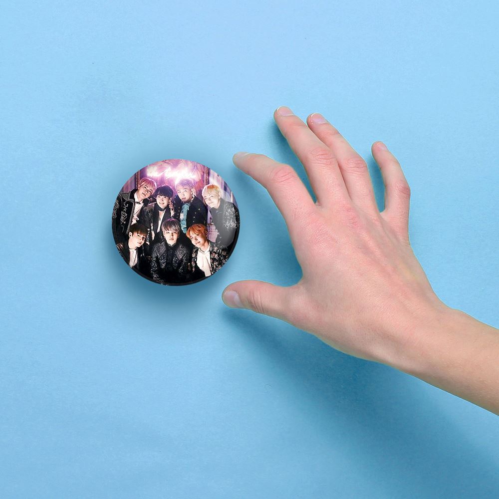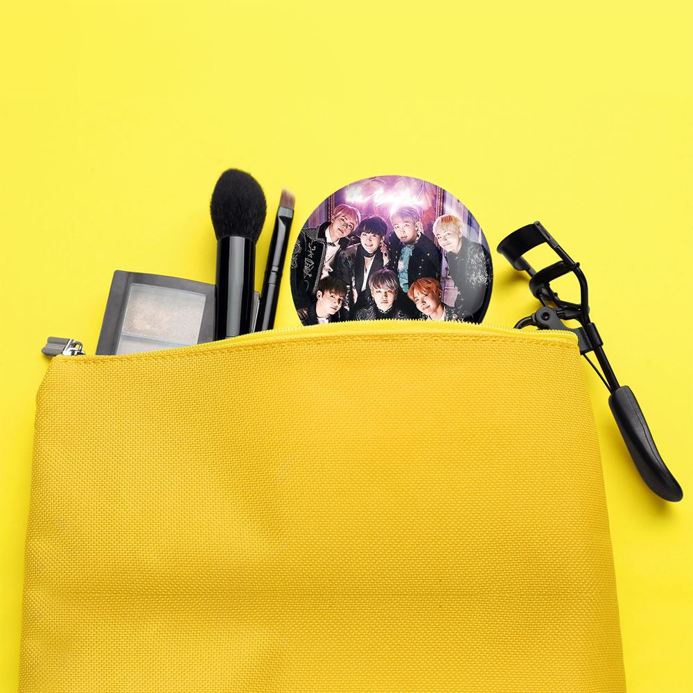 آینه های جیبی گروه بی تی اس BTS خندالو دایره ای به قطر 7.5 سانتی متر می باشد که نه خیلی بزرگ و غیر قابل استفاده در کیف آرایشی ست و نه خیلی کوچک که تصویر خاصی در آن مشاهده نشود. سایزی استاندارد و کارآمد دارد و مناسب قرار گیری در کیف لوازم آرایش و کیف های کوچک دستی نیز هست.