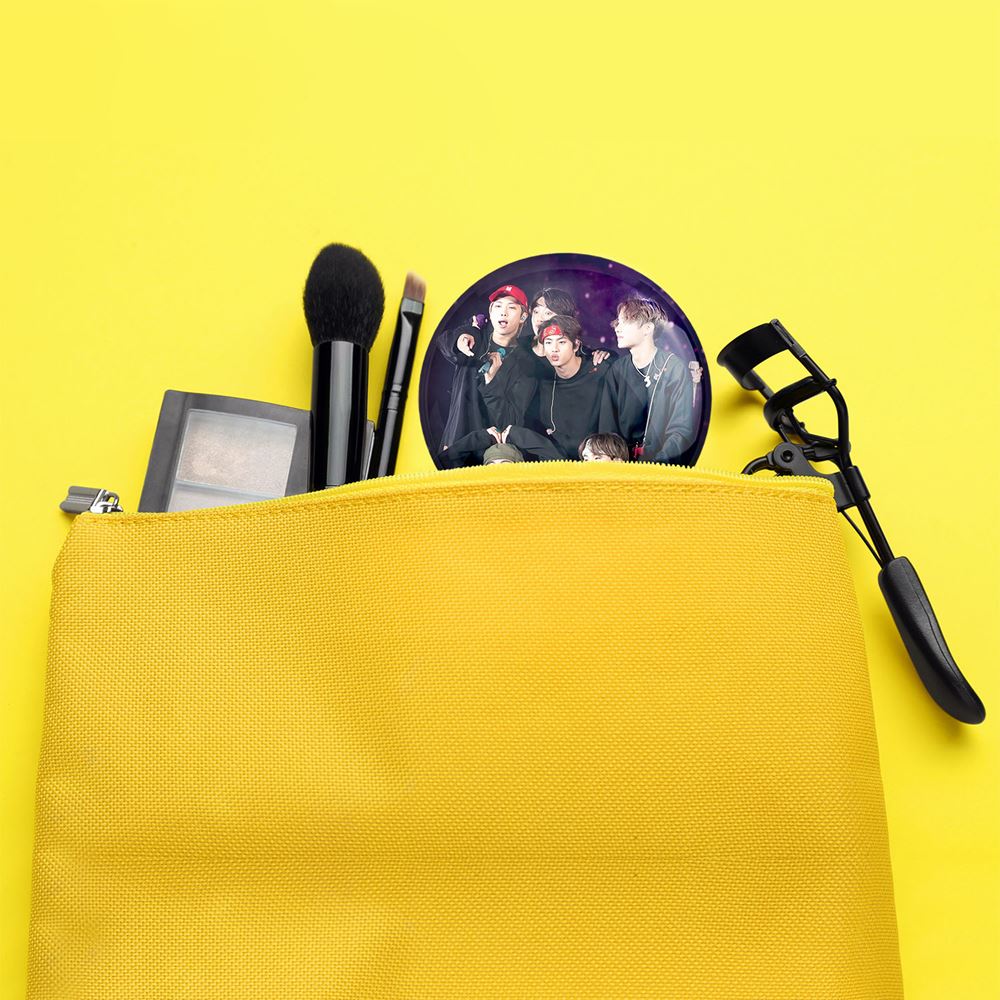 آینه های جیبی گروه بی تی اس BTS خندالو دایره ای به قطر 7.5 سانتی متر می باشد که نه خیلی بزرگ و غیر قابل استفاده در کیف آرایشی ست و نه خیلی کوچک که تصویر خاصی در آن مشاهده نشود. سایزی استاندارد و کارآمد دارد و مناسب قرار گیری در کیف لوازم آرایش و کیف های کوچک دستی نیز هست.