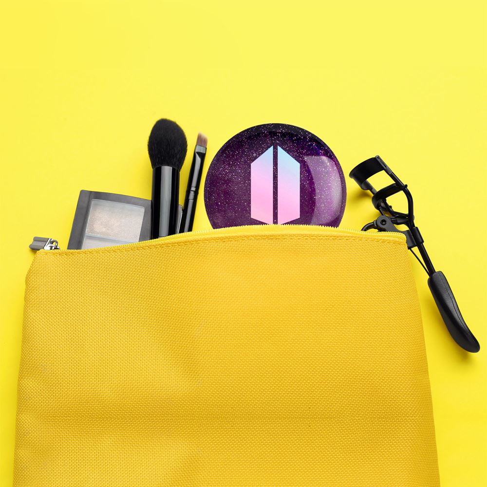 آینه های جیبی گروه بی تی اس BTS خندالو دایره ای به قطر 7.5 سانتی متر می باشد که نه خیلی بزرگ و غیر قابل استفاده در کیف آرایشی ست و نه خیلی کوچک که تصویر خاصی در آن مشاهده نشود. سایزی استاندارد و کارآمد دارد و مناسب قرار گیری در کیف لوازم آرایش و کیف های کوچک دستی نیز هست.