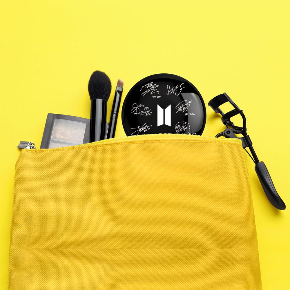 آینه های جیبی گروه بی تی اس BTS خندالو دایره ای به قطر 7.5 سانتی متر می باشد که نه خیلی بزرگ و غیر قابل استفاده در کیف آرایشی ست و نه خیلی کوچک که تصویر خاصی در آن مشاهده نشود. سایزی استاندارد و کارآمد دارد و مناسب قرار گیری در کیف لوازم آرایش و کیف های کوچک دستی نیز هست.
