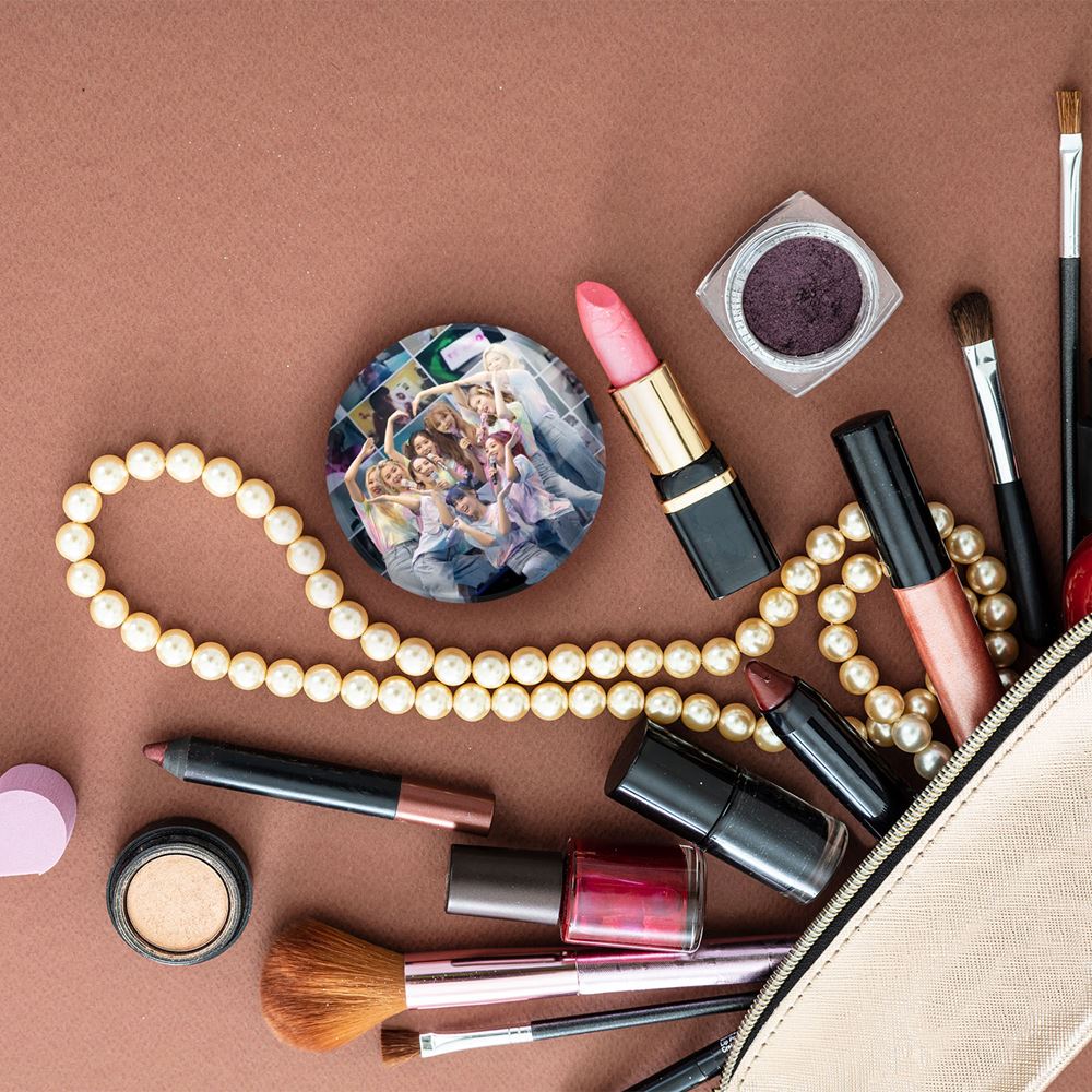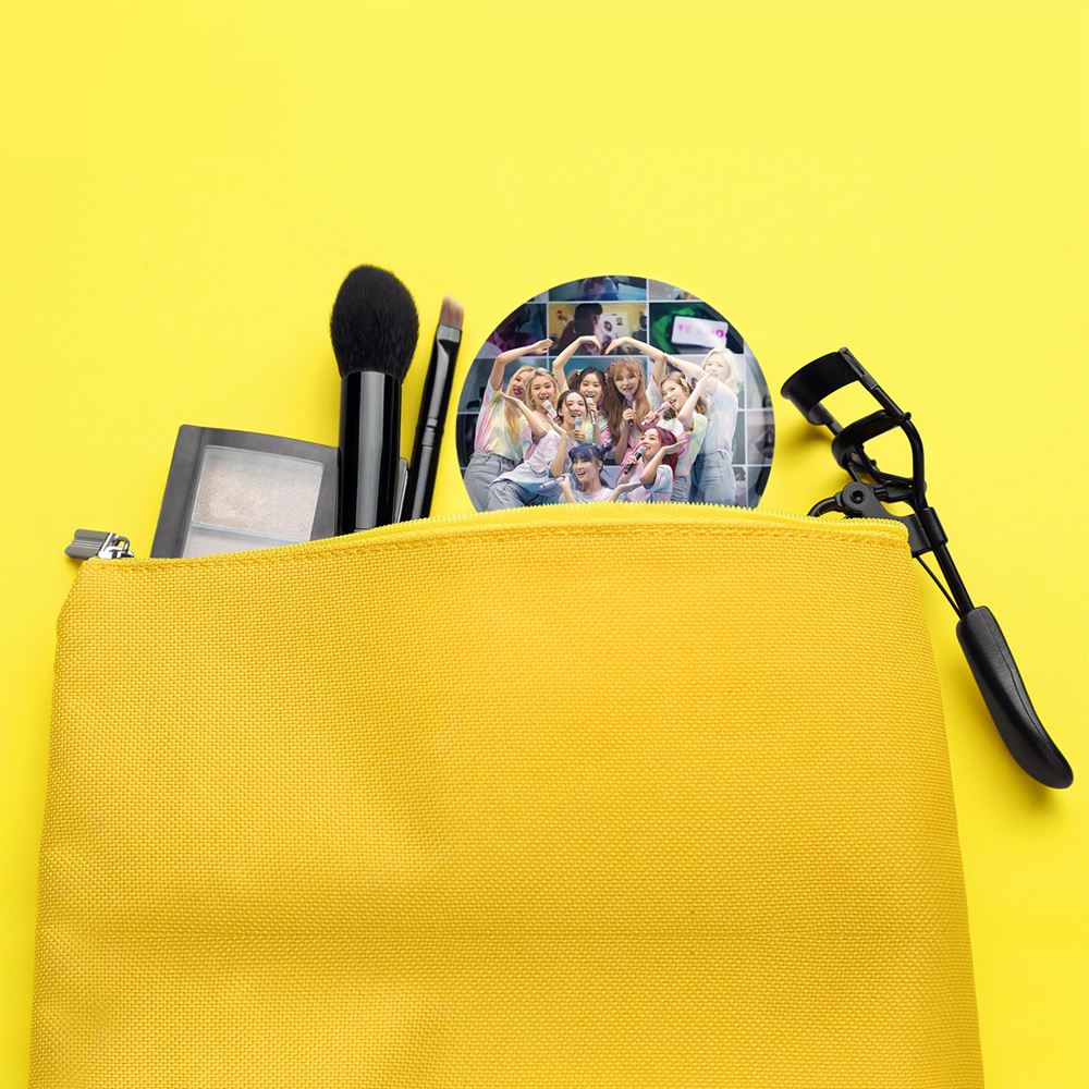 آینه های جیبی گروه توایس TWICE خندالو دایره ای به قطر 7.5 سانتی متر می باشد که نه خیلی بزرگ و غیر قابل استفاده در کیف آرایشی ست و نه خیلی کوچک که تصویر خاصی در آن مشاهده نشود. سایزی استاندارد و کارآمد دارد و مناسب قرار گیری در کیف لوازم آرایش و کیف های کوچک دستی نیز هست.