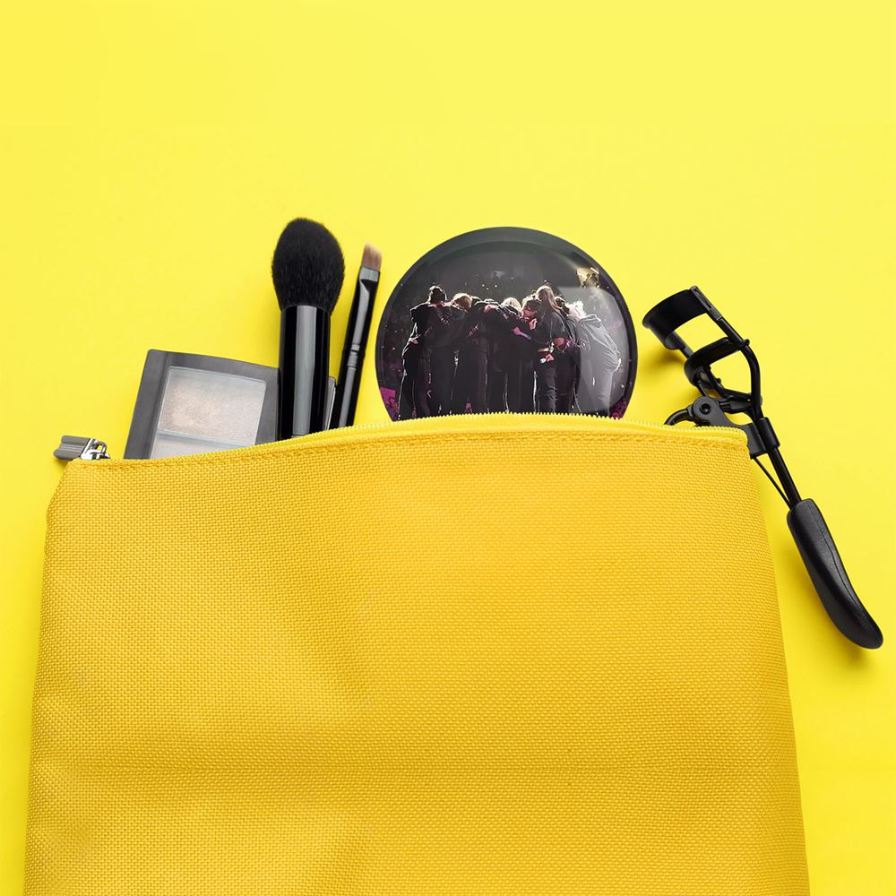 آینه های جیبی گروه توایس TWICE خندالو دایره ای به قطر 7.5 سانتی متر می باشد که نه خیلی بزرگ و غیر قابل استفاده در کیف آرایشی ست و نه خیلی کوچک که تصویر خاصی در آن مشاهده نشود. سایزی استاندارد و کارآمد دارد و مناسب قرار گیری در کیف لوازم آرایش و کیف های کوچک دستی نیز هست.