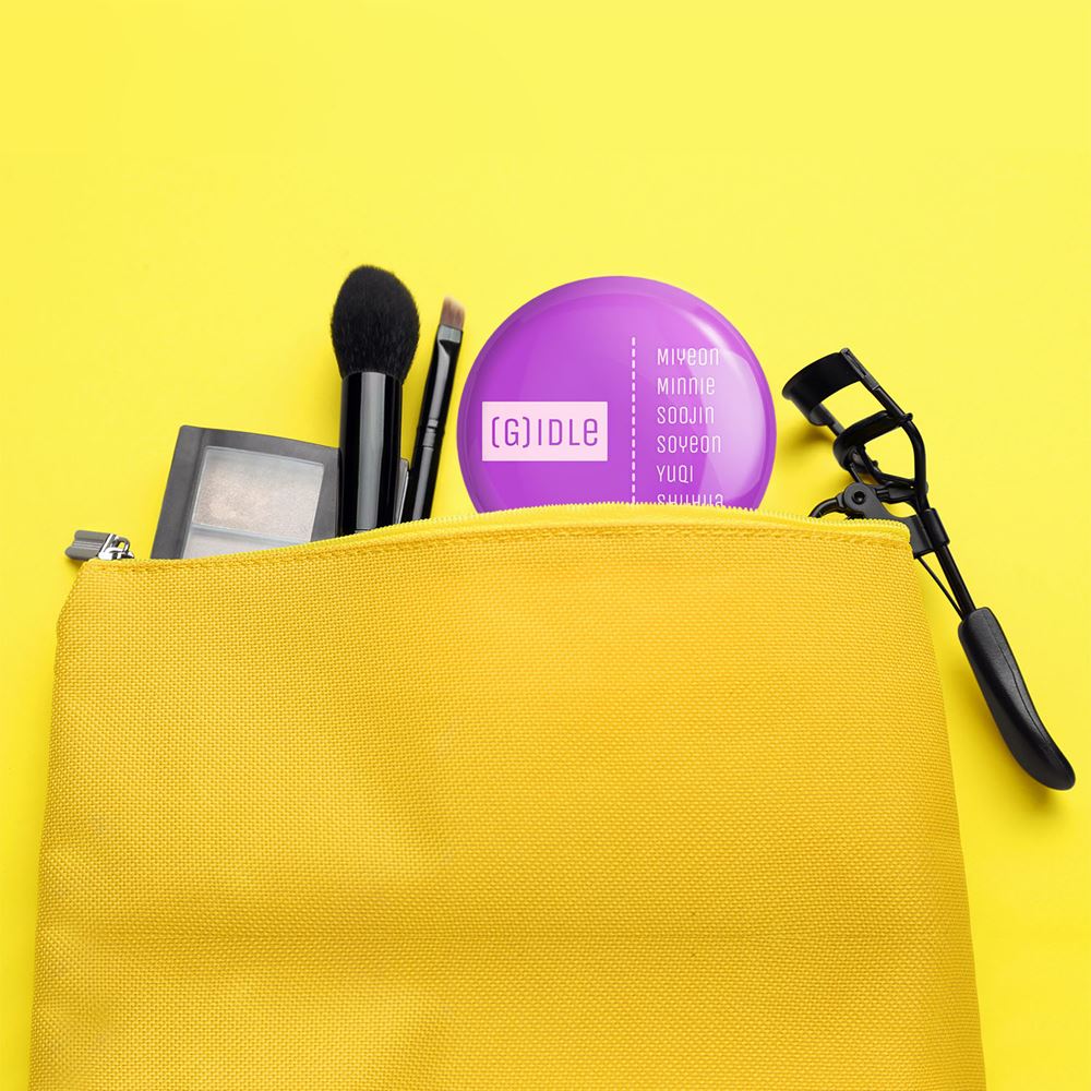 آینه های جیبی گروه جی آیدل GIdle خندالو دایره ای به قطر 7.5 سانتی متر می باشد که نه خیلی بزرگ و غیر قابل استفاده در کیف آرایشی ست و نه خیلی کوچک که تصویر خاصی در آن مشاهده نشود. سایزی استاندارد و کارآمد دارد و مناسب قرار گیری در کیف لوازم آرایش و کیف های کوچک دستی نیز هست.