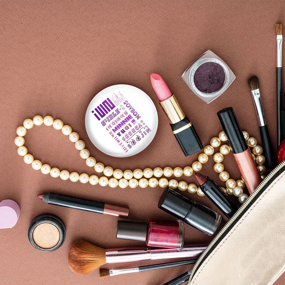 آینه های جیبی گروه جی آیدل GIdle خندالو دایره ای به قطر 7.5 سانتی متر می باشد که نه خیلی بزرگ و غیر قابل استفاده در کیف آرایشی ست و نه خیلی کوچک که تصویر خاصی در آن مشاهده نشود. سایزی استاندارد و کارآمد دارد و مناسب قرار گیری در کیف لوازم آرایش و کیف های کوچک دستی نیز هست.