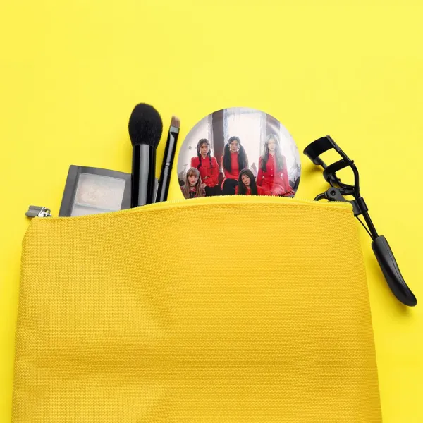آینه های جیبی گروه رد ولوت Red Velvet خندالو دایره ای به قطر 7.5 سانتی متر می باشد که نه خیلی بزرگ و غیر قابل استفاده در کیف آرایشی ست و نه خیلی کوچک که تصویر خاصی در آن مشاهده نشود. سایزی استاندارد و کارآمد دارد و مناسب قرار گیری در کیف لوازم آرایش و کیف های کوچک دستی نیز هست.