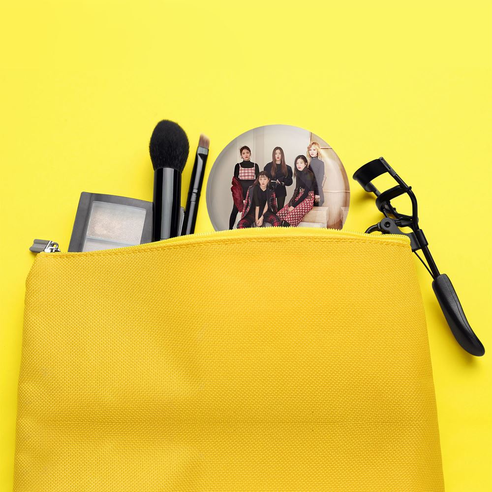 آینه های جیبی گروه رد ولوت Red Velvet خندالو دایره ای به قطر 7.5 سانتی متر می باشد که نه خیلی بزرگ و غیر قابل استفاده در کیف آرایشی ست و نه خیلی کوچک که تصویر خاصی در آن مشاهده نشود. سایزی استاندارد و کارآمد دارد و مناسب قرار گیری در کیف لوازم آرایش و کیف های کوچک دستی نیز هست.